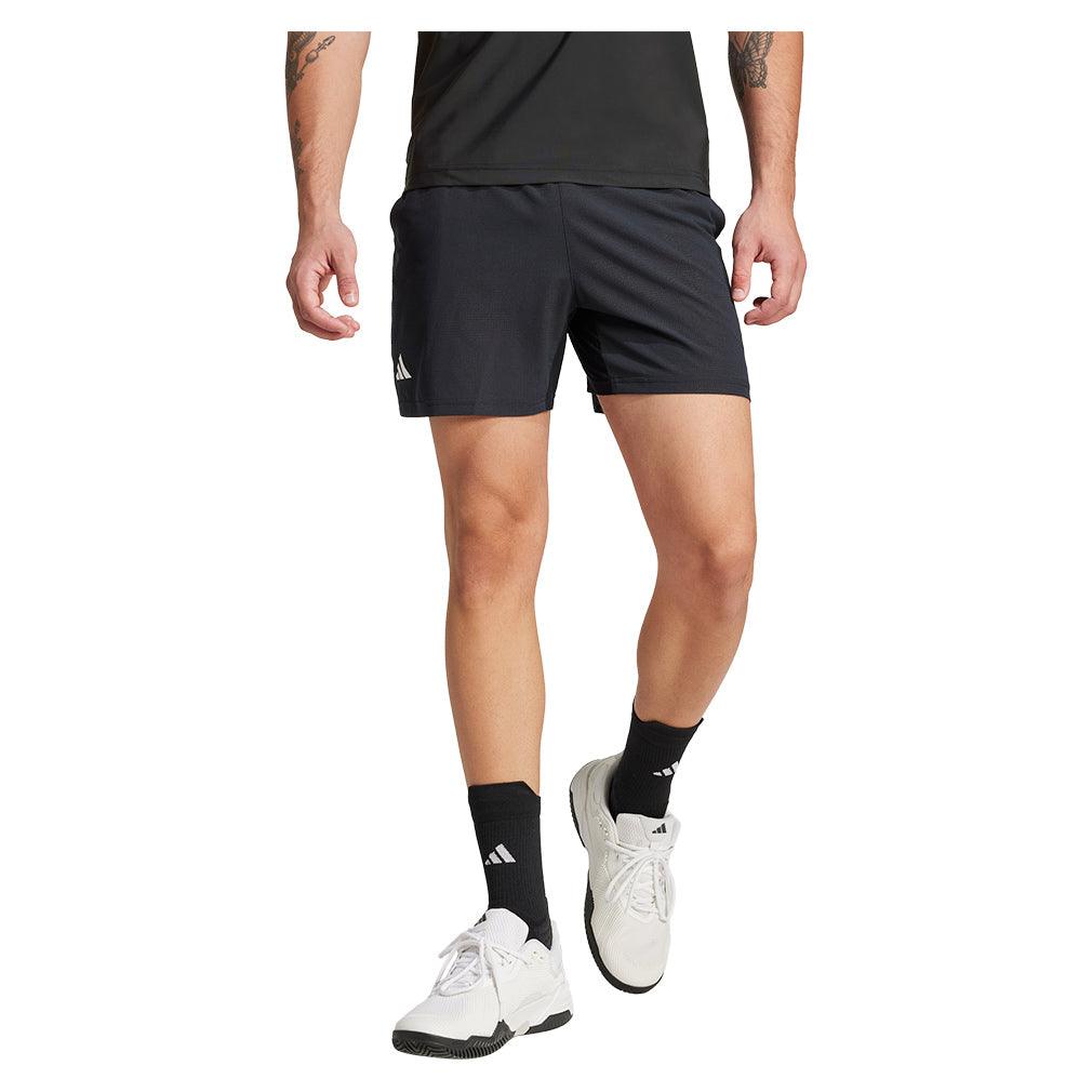 Introducing the Adidas Men's Ergo 5in Tennis Shorts, designed for maximum comfort and performance. With a 5-inch inseam, these shorts allow for fast and fluid movements on the court. The breathable fabric ensures you stay cool and dry during even the toughest matches. Simple yet stylish, these shorts are a must-have for any tennis player.