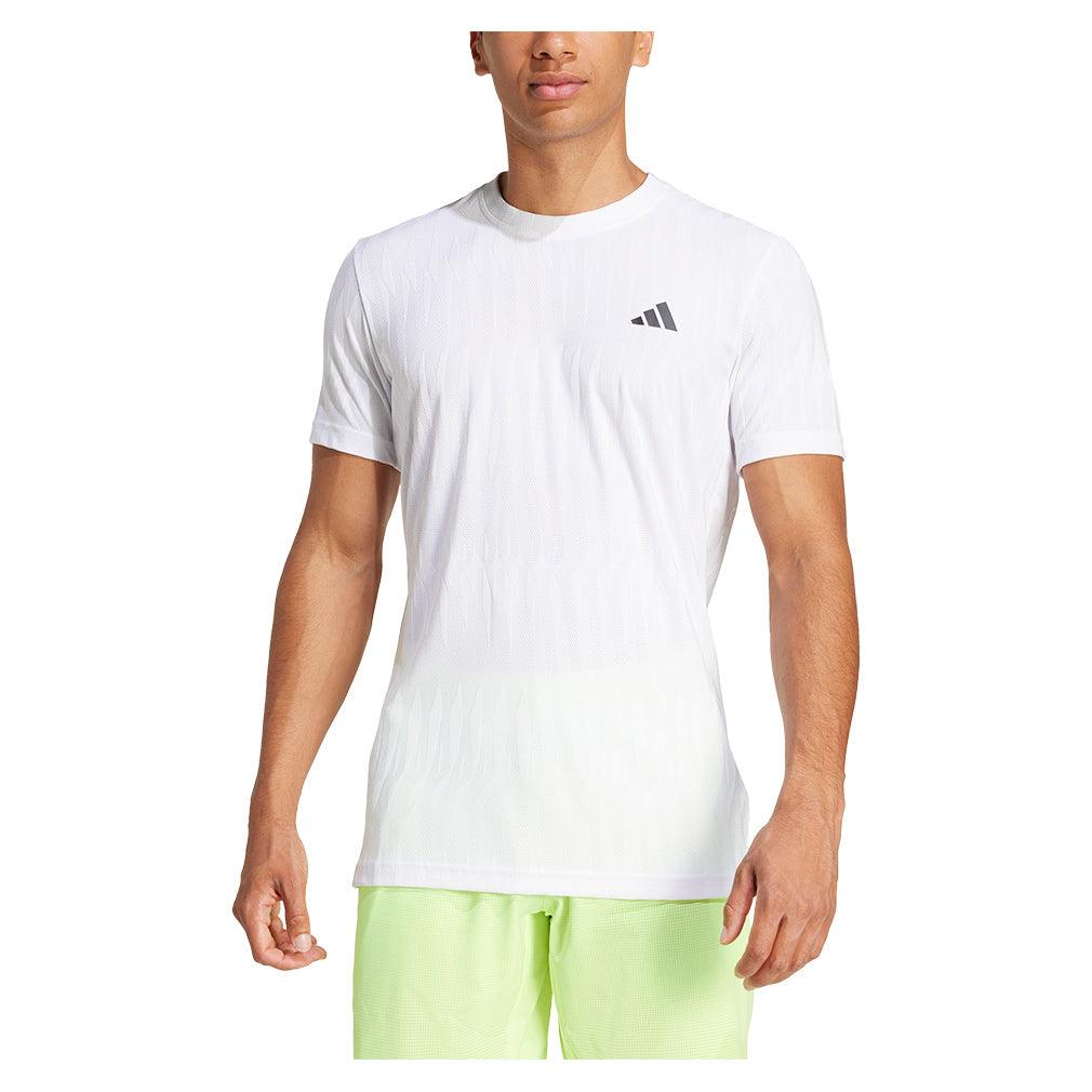 Stay cool and comfortable in the Adidas Men's Freelift Tennis Top. Made with ClimaCool technology, this shirt helps dry sweat so you can focus on your game. Its simple yet stylish design makes it perfect for practice or matches. Elevate your performance with this top's fun look and superior comfort.