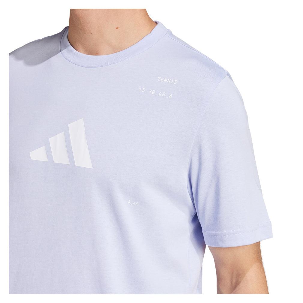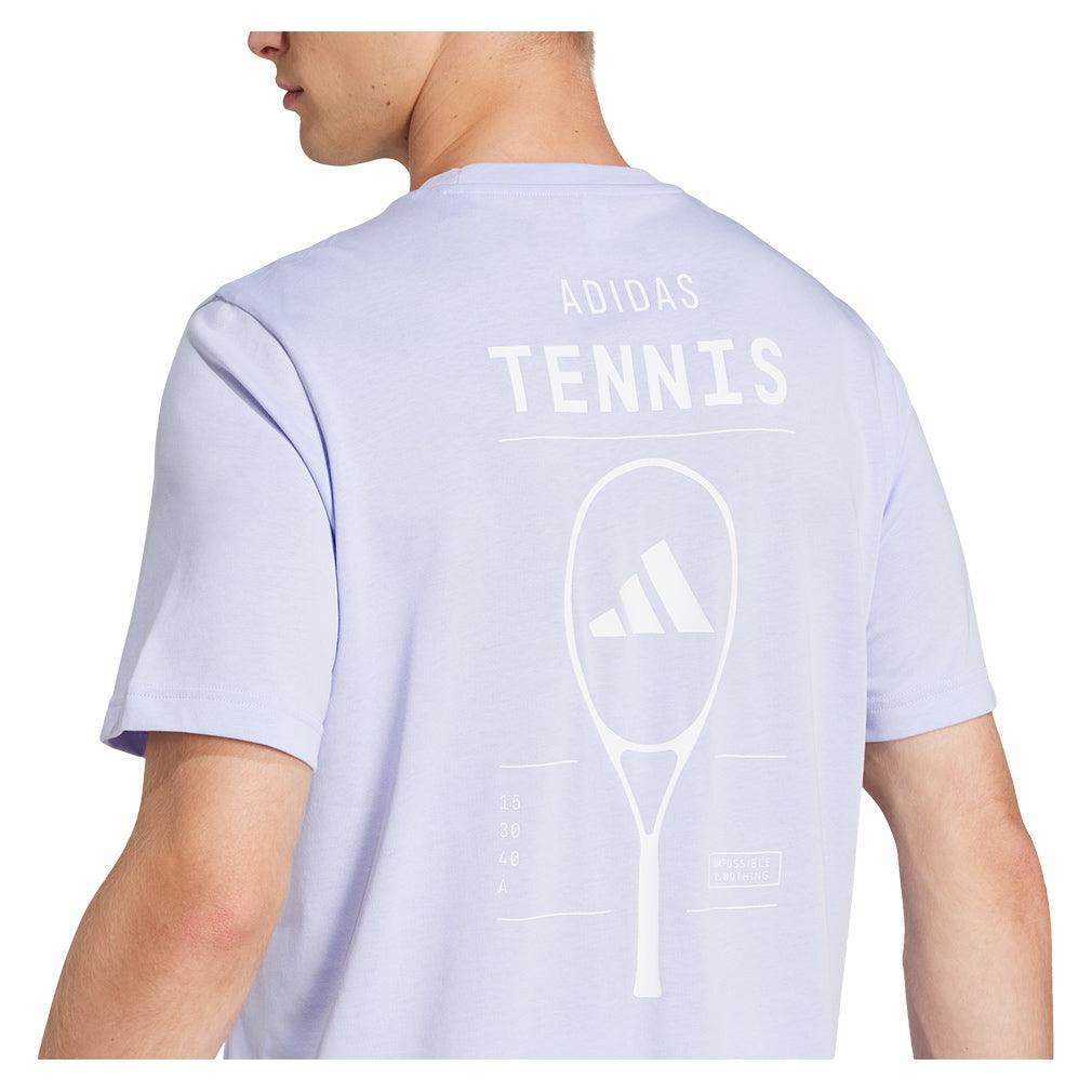 Shake things up when you wear the Adidas Men's Graphic Tennis Top. This graphic t-shirt features a standard fit and is designed with soft fabric to keep you comfortable while you play. Perfect for any occasion, this top is a must-have for any tennis, pickleball, or padel player who plays often and plays hard. This shirt features the Adidas logo over the center of the chest.