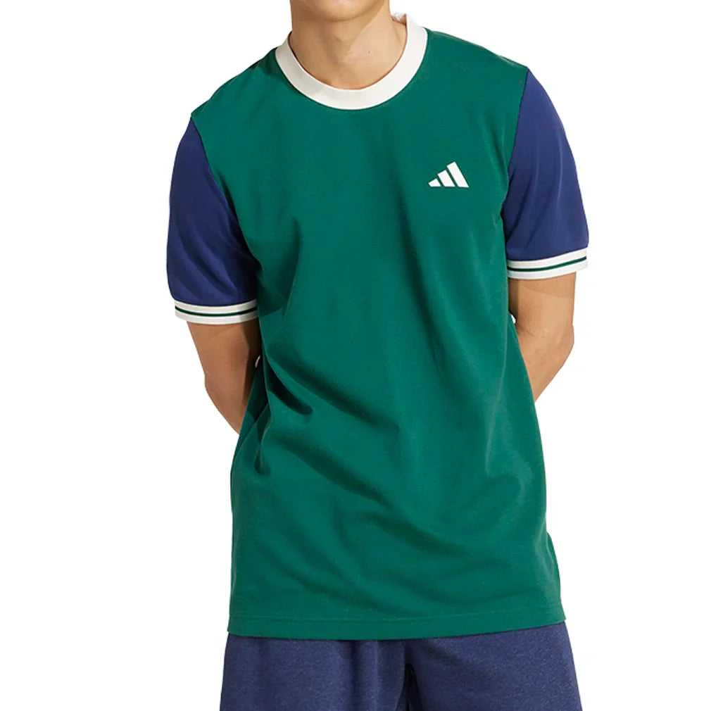 Carry on the tennis legacy with the adidas Men's Heritage Tennis Top. This crew neck shirt is designed with a contrasting collar and stripes around the sleeve cuffs for a timeless vintage style. A brand logo on the left side of the chest adds the finishing touches, creating an iconic look.