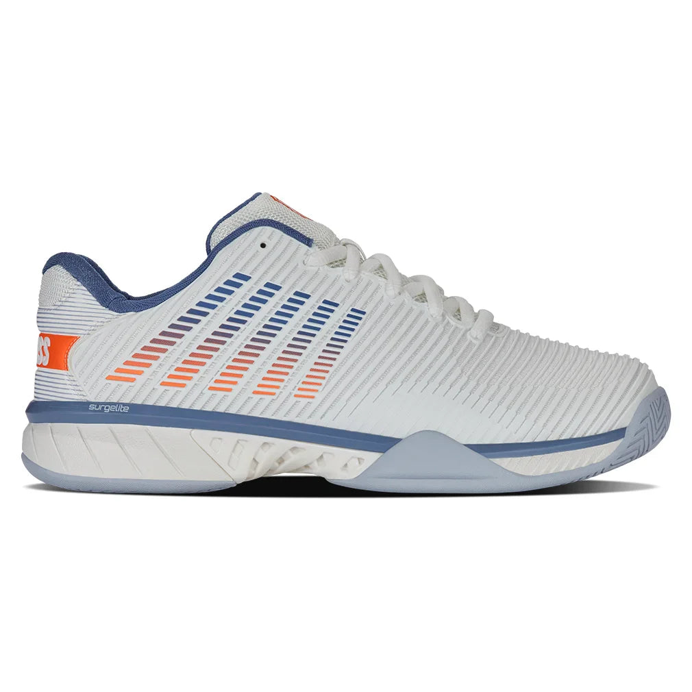 K-Swiss Men's Hypercourt Express 2 Wide Tennis Shoes build on the success of one of the most popular shoes in the sport: The Hypercourt Express. With this update, players will benefit from a lighter overall build, more supportive upper, and new Surgelite midsole technology. The Hypercourt Express 2 maintains the comfortable fit past Hypercourts were known for and introduces a modern style to keep your feet looking as fresh as they'll feel on the court.