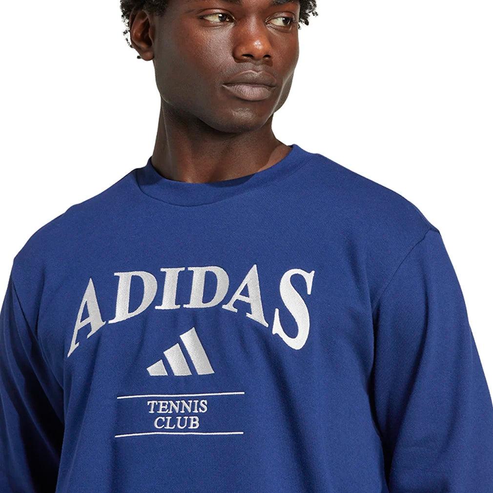 Join the club with the adidas Men's Long Sleeve Heritage Graphic Tennis Top. Its front graphic features the iconic 3 stripe brand logo and printed Tennis Club branding. Knitted cuffs on the sleeves and hem create a comfortable fit that retains heat, keeping a cozy feeling.