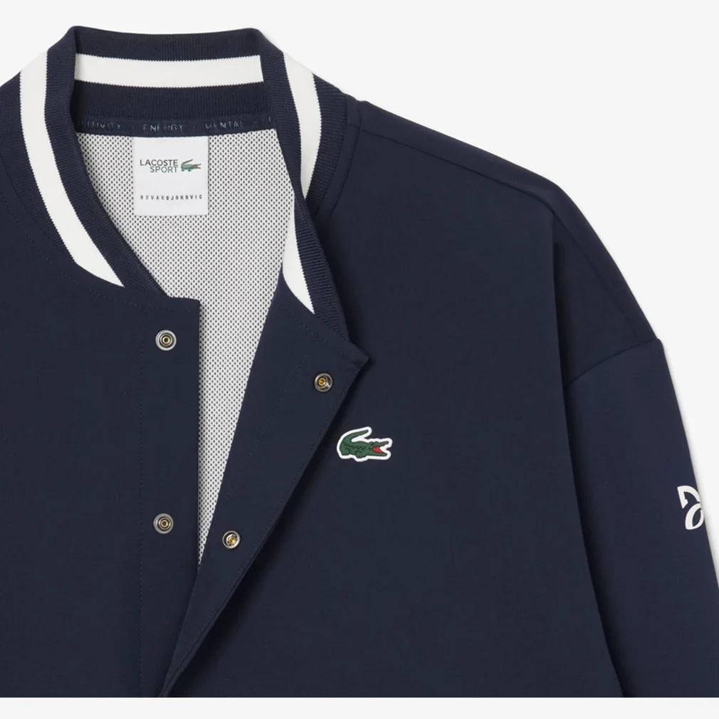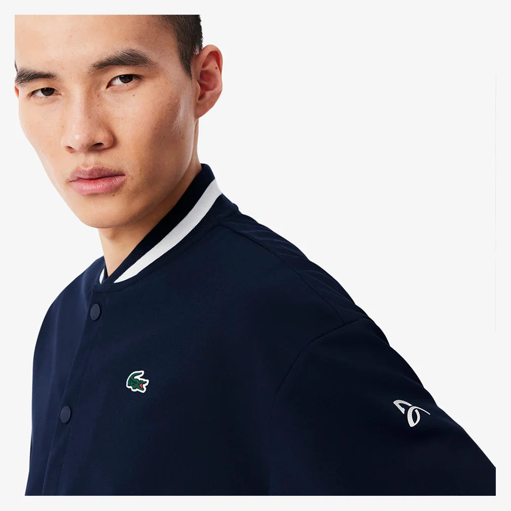 Get ready to dominate the court and turn heads with the Men's Novak Djokovic Ceremony Tennis Jacket. Perfect for warming up, playing in cold weather, or a romantic fall date. Not just for tennis, this jacket brings style and fashion to life. With the embroidered Lacoste logo over the chest and Novak's signature logo on the left arm, you'll have rival tennis players wishing they had thought to wear something just as stylish.