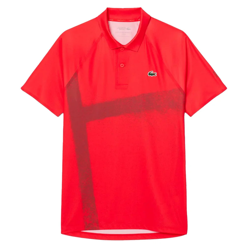 Unleash your competitive spirit like the Djoker himself with the Lacoste Men's Novak Djokovic Light Stretch On Court Tennis Polo. Its classic collar and two-button placket exude a bold, confident style. Featuring light stretch fabric for increased mobility and the iconic Lacoste alligator logo, this polo is a must-have for any tennis player ready to conquer the court. The graphic on the front of the shirt showcases the exciting depiction of tennis court lines.