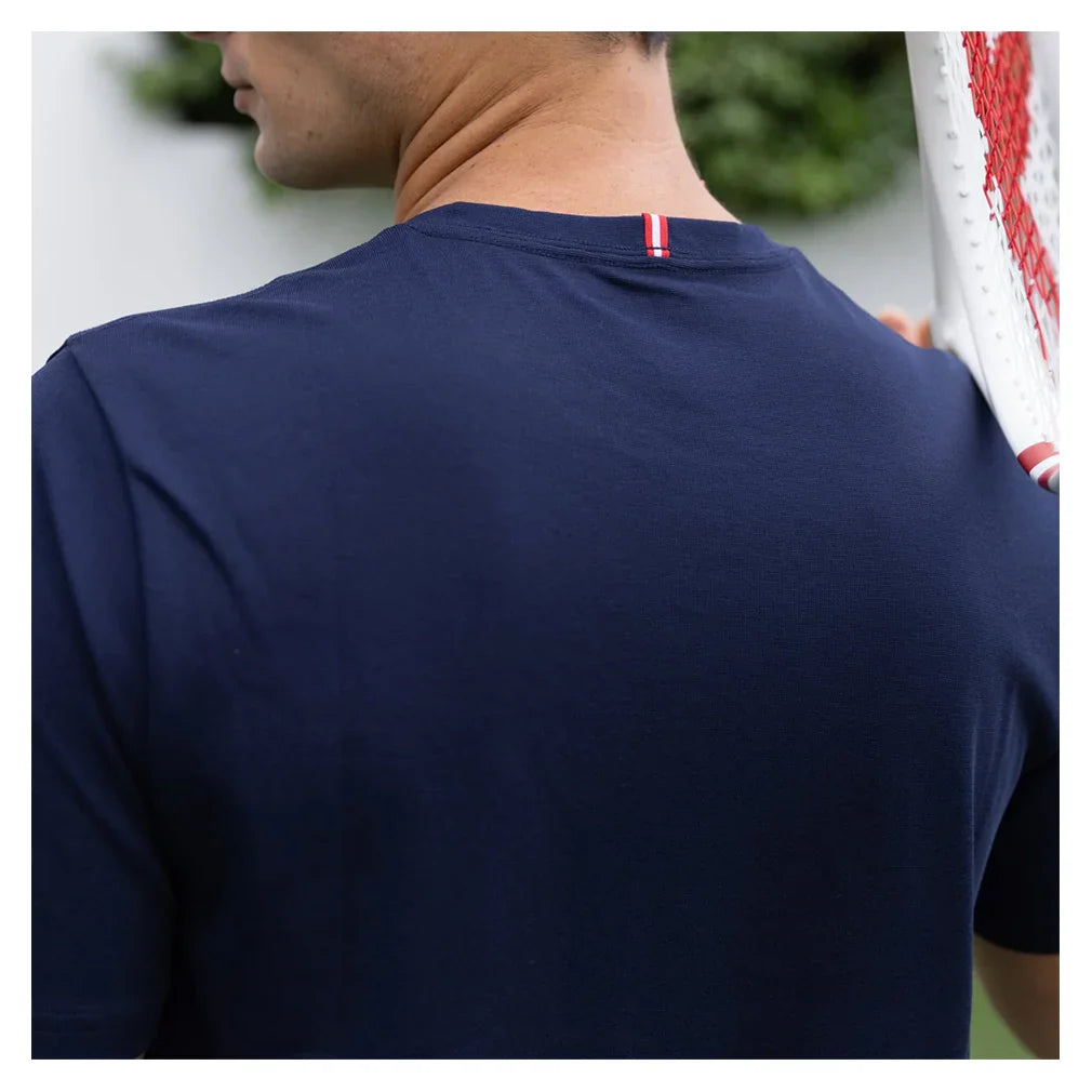 The BOAST Men's Performance Tennis Top brings just enough polish to elevate your light practice sessions without making you look like you're trying too hard. Clean crew neck construction with set-in sleeves gets the stripe trim treatment and an embroidered logo that adds texture instead of just another flat graphic. Perfect for when you want performance that transitions seamlessly from court to coffee shop without changing shirts.