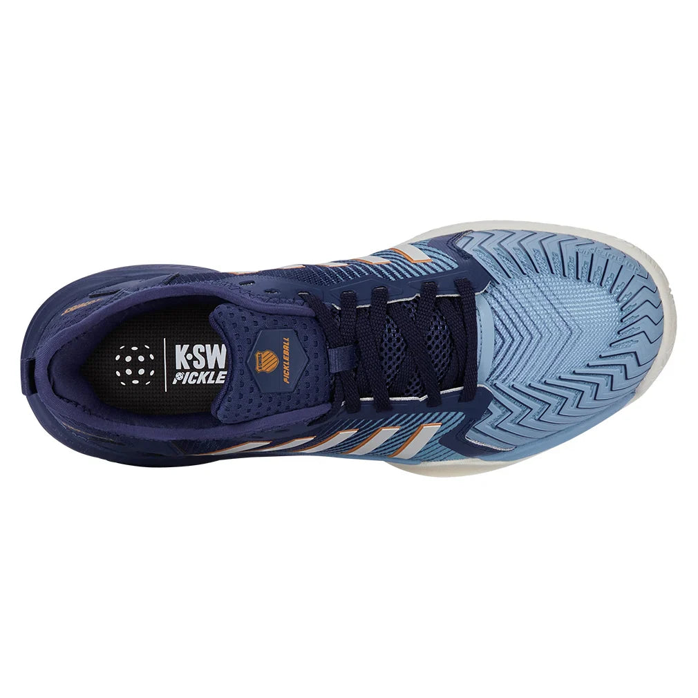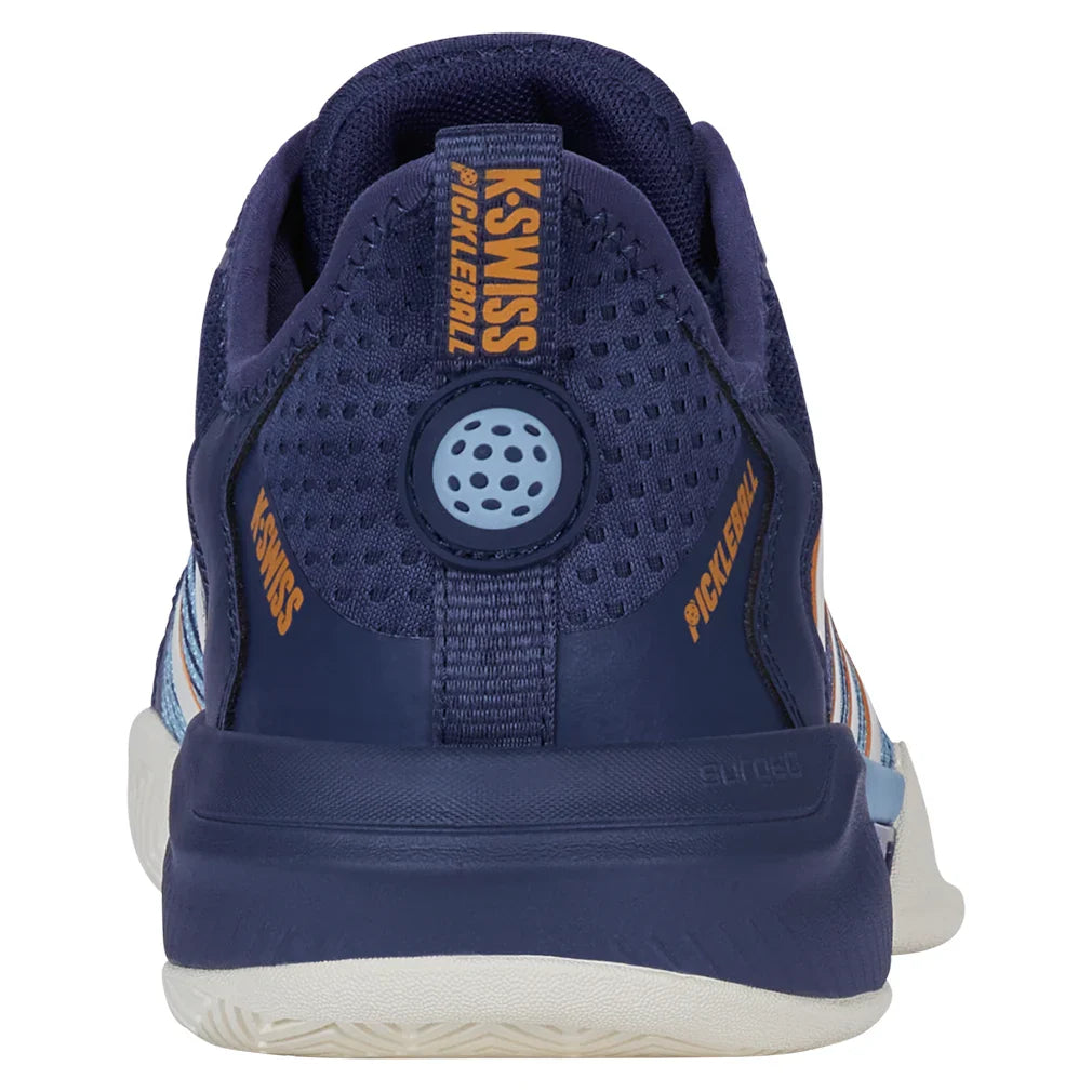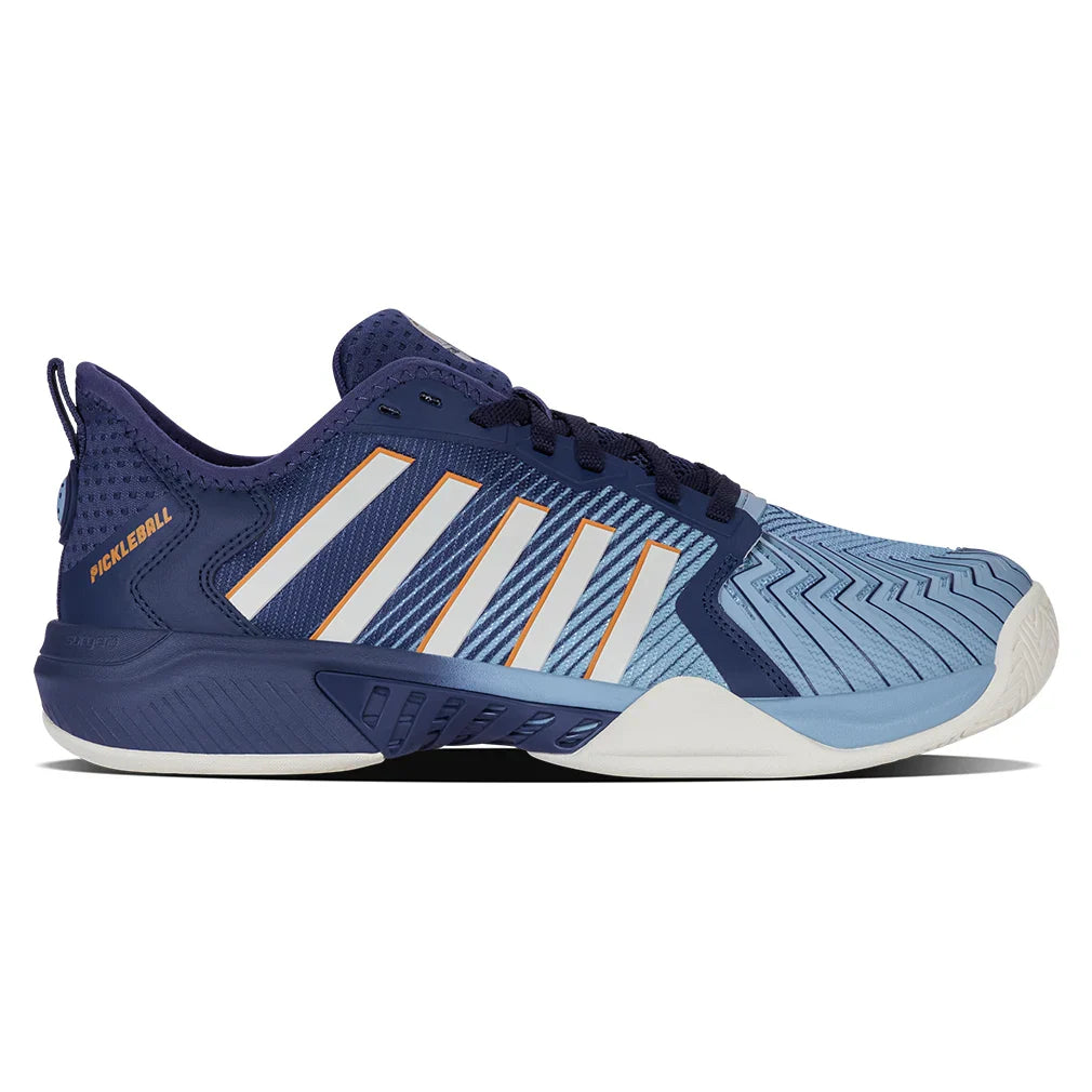 The K-Swiss Men's Pickleball Supreme Shoe is designed for competitive players who demand the most from their footwear. The shoe is very lightweight and it incorporates K-Swiss' Surge 7.0 midsole cushioning for energy return. The upper features a new Durawrap Flex for better abrasion resistance, to go along with the tough Dragguard 7.0 outsole.
