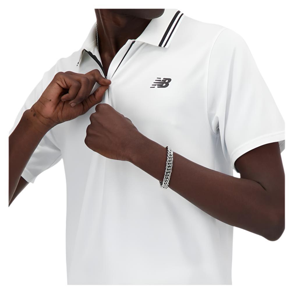 Aim for the top with the New Balance Men's Tournament Tennis Polo. Its striped collar brings out visual contrast to heighten this classic design. Underarm gussets give more mobility to your movements and the dropped back hem adds more coverage. NB Dry moisture-wicking technology moves sweat away from the skin for fast-drying relief that keeps players feeling cool throughout a tough match.