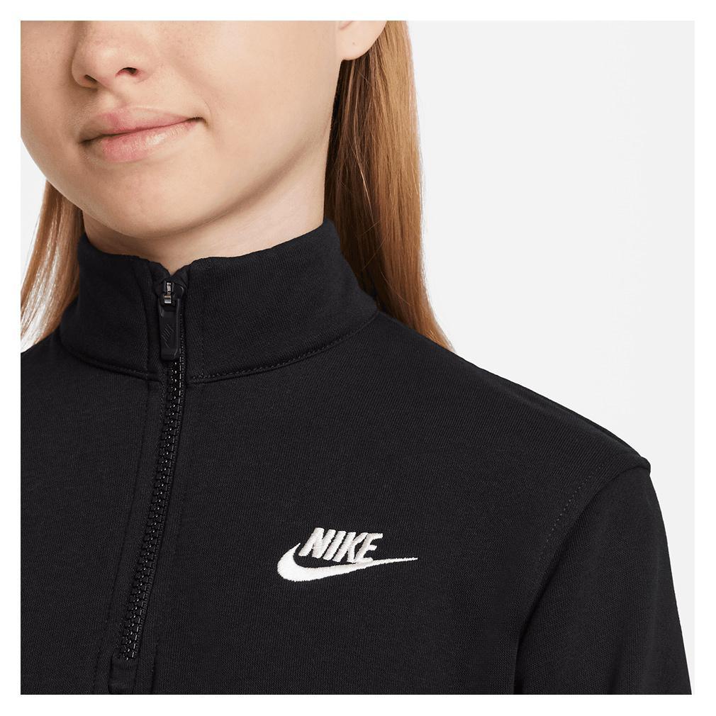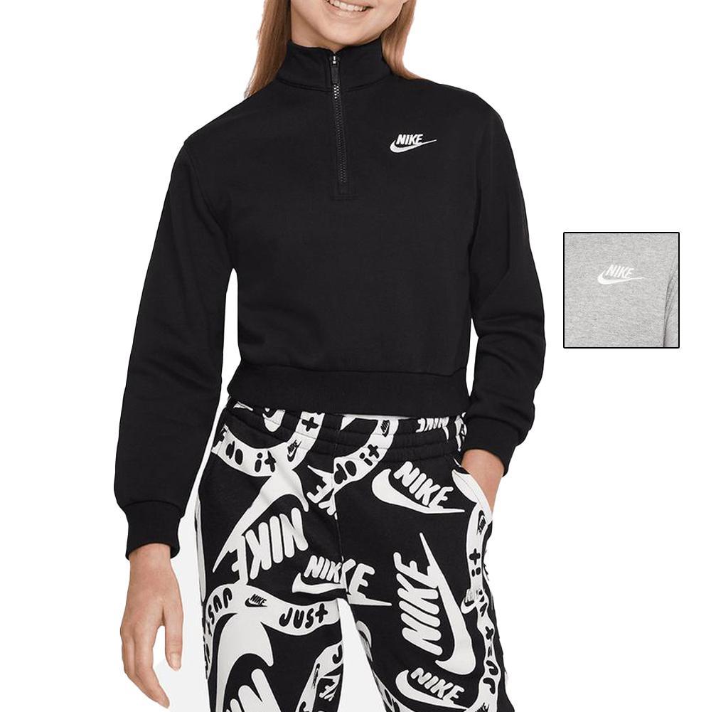 Nike Girl's 1/2 Zip Long Sleeve Top. Smooth on the outside, and brushed soft on the inside, this lightweight fleece is an easy layer when you want a little extra warmth. We think it's perfect for those in-between days. From the playground to practice, this easy-fitting top simplifies staying comfy and on the move throughout the year. Designed for every shape and size, this new improved fit is for all kids. The top is designed to hit the top of your hips for a slightly cropped fit. Extra stretch in the cuffs provides long-lasting comfort and is easy on and off. Zipped up or unzipped? You decide when you need extra warmth or air with this 1/2-zip design.