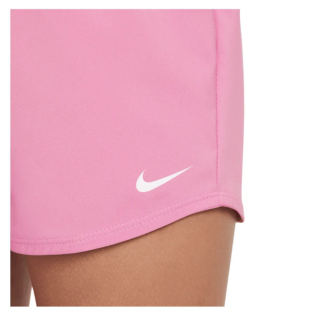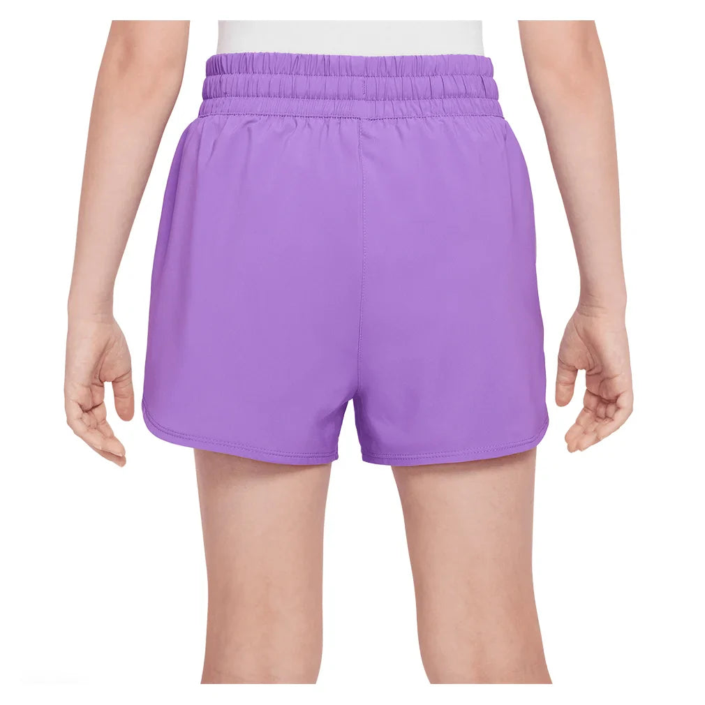 Nike Girls' Dri-FIT High-Waisted Woven Training Shorts. Running for fun. Running for sport. Running to just stretch those legs out from a long day of school. These Nike Dri-FIT One shorts are made for your every stride. They're lightweight and durable, plus have breathable lining so staying comfy is never a worry. Nike Dri-FIT technology moves sweat away from your skin for quicker evaporation, helping you stay dry and comfortable. Woven fabric is lightweight and durable. High-waisted fit provides extra coverage so you can pair it with a crop top (if you want). A stretchy waistband gives a snug fit with an inner lining that provides extra coverage. Complete with a pocket inside the back waistband lets you keep a small essential—like keys, cards, or lip balm.