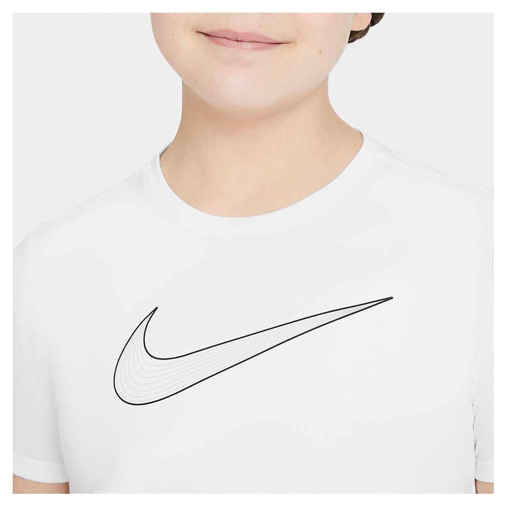 Have her show off her A-game with our Nike Girls' Dri-FIT One Short-Sleeve Training Top White and Black. This is a highly versatile training top that offers lightweight, sweat-wicking technology. It is also comfortable and easy to move in so she can bound across the court or have endless fun on the playground. Pair with her favorite training bottoms for an unbeatable look.
