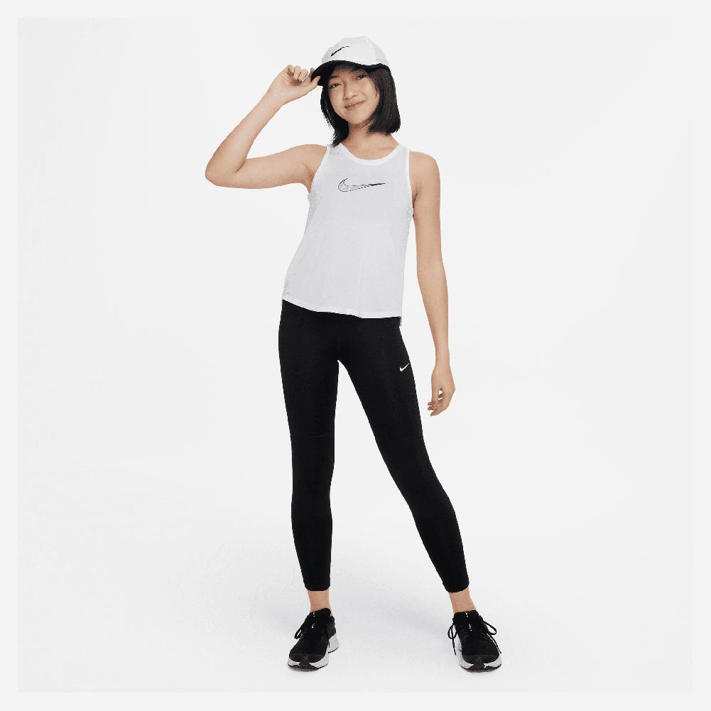 The NIKE Girls' Dri-FIT Training T-Shirt is perfect for whatever gets you moving. Play, practice and tennis match whatever it is, this tee keeps you dry and comfortable so you can do your best and have fun. It uses Nike's Dri-FIT technology to keep sweat away from your body so that you can focus on what matters most: having fun! The fabric is lightweight and breathable, so it feels like a classic t-shirt without feeling too loose or too slim. The ribbed collar stretches so you can easily pull the shirt on and off.