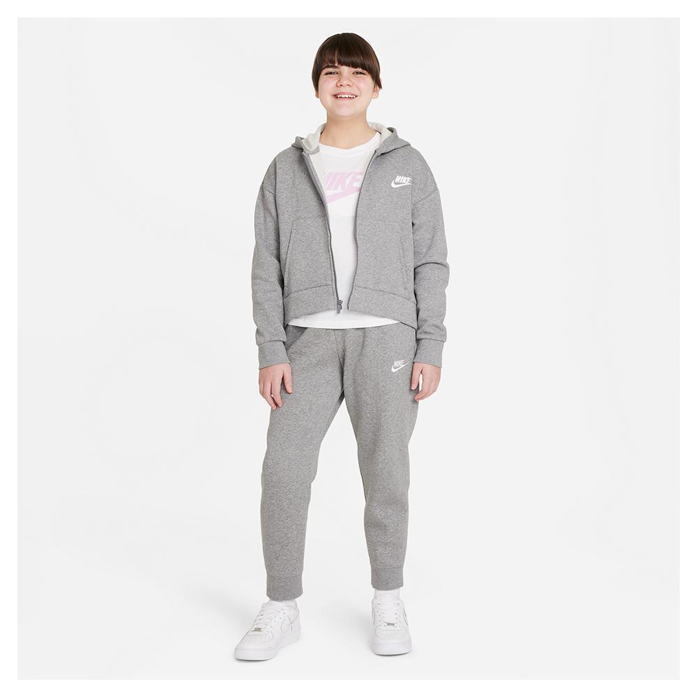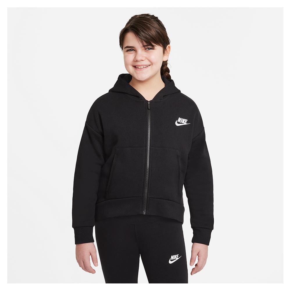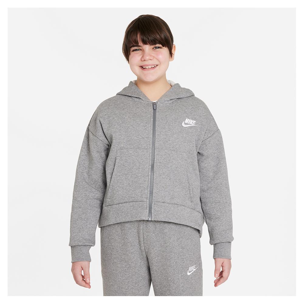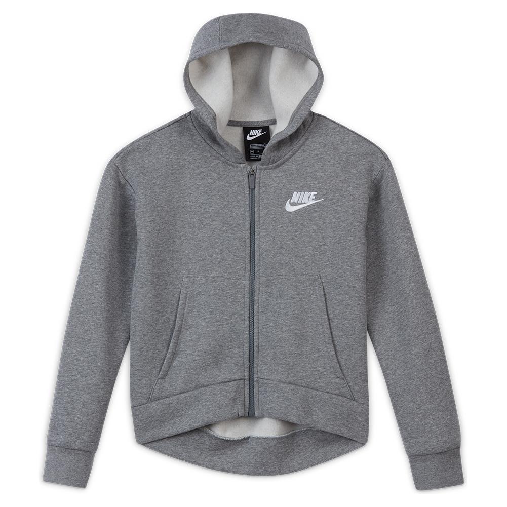 Stay warm and stylish this holiday season with our Nike Girls' Sportswear Club Fleece Full-Zip Hoodie. This hoodie is soft and has a standard fit giving it a comfortable relaxed feel. It also has front pockets and a longer hem in the back for extra coverage. She will love this hoodie for playing on the playground, hanging out, and everything in between.