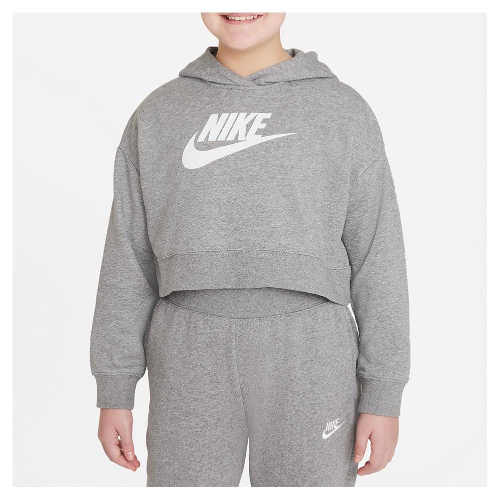 Girls' Sportswear Club French Terry Cropped Hoodie Carbon Heather and White