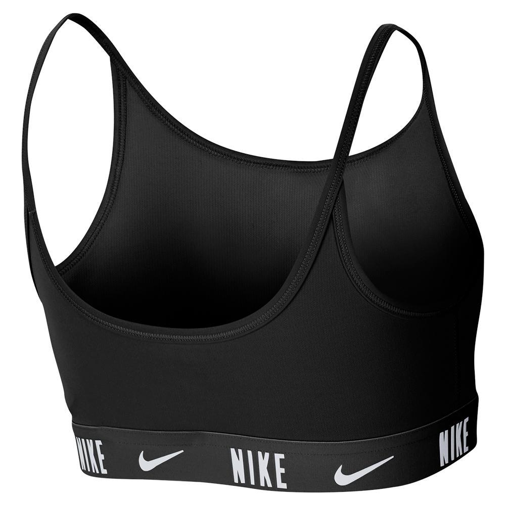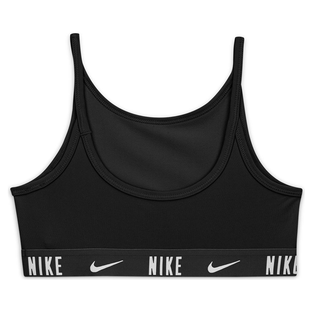 Bring some comfort to your game with our Nike Girls' Trophy Sports Bra. This sports bra offers light support and is super soft. You will also love its snug fit and stretchy fabric making it even more comfortable. Plus with its high-chest design, you will have the coverage you need to withstand rigorous play. Fully equipped with Dri-FIT technology, this bra will keep you on the court all day long. It is also a minimalist style with its exposed wordmark elastic band making it an excellent match for any article of clothing you have in your wardrobe.