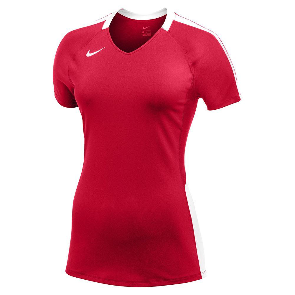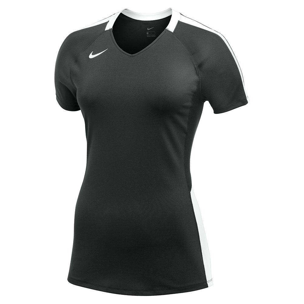 The Nike Girls' Vapor Pro Short Sleeve Jersey will have your team thinking victory throughout the season. It's made with Nike Dry fabric that will keep players sweat free and comfortable. A full mesh back panel is added for excellent breathability and set-in sleeves allow for a natural range of motion. The classy V-neck collar provides a versatile fit and contrasting colors along the shoulders and sides provide an iconic look.