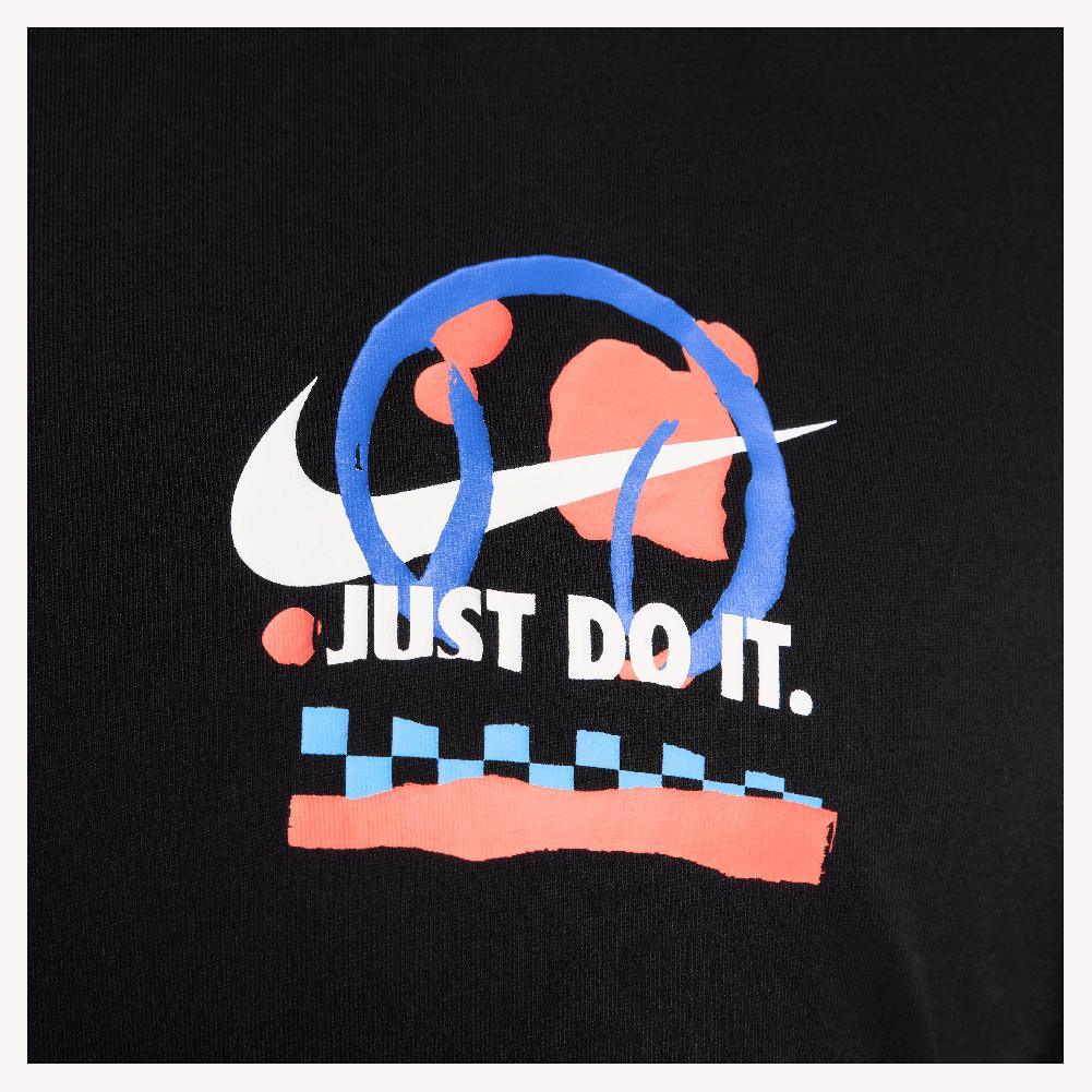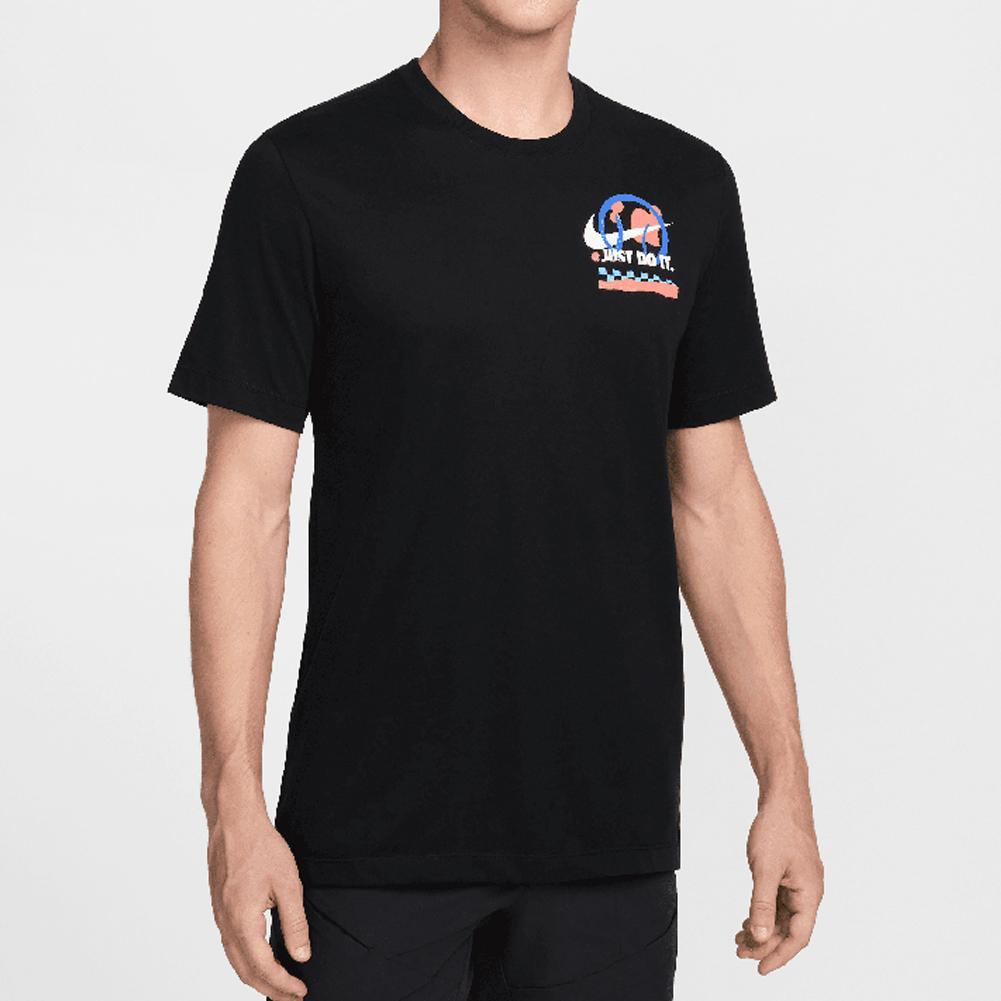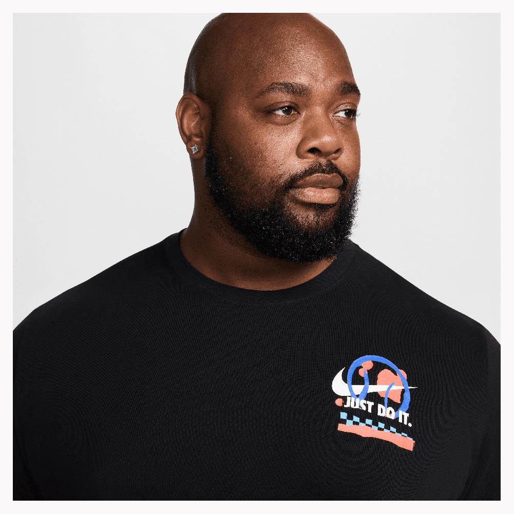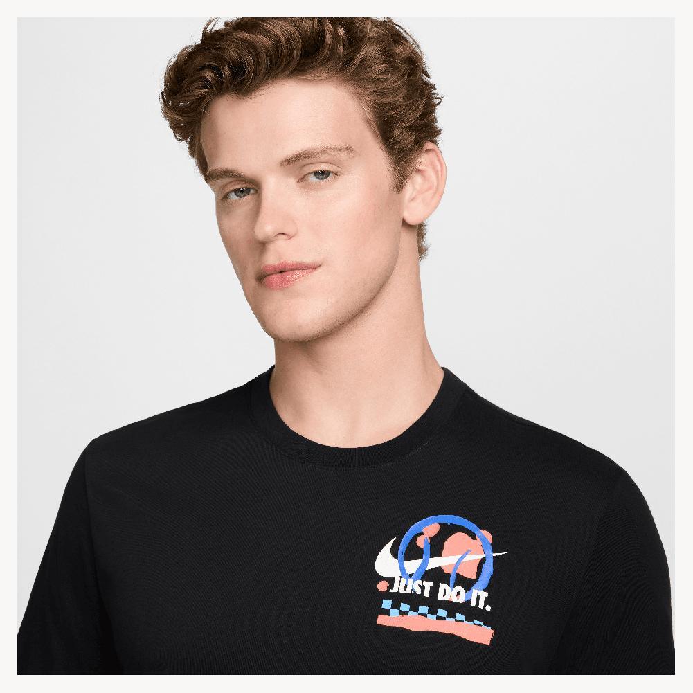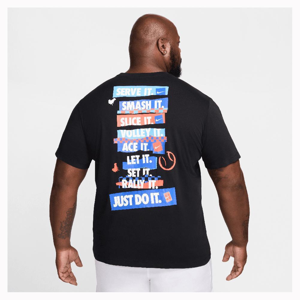 Show off your attitude with the Nike Mens Dri-Fit Tennis Top. This crew neck tee takes the iconic "Just Do It" motto to the next level with an eye-catching chest logo on the front side. Its backside features a slew of similar tennis-related mottos to motivate players to do their best. The blended fabrics offer a soft and comfortable feel while Dri-Fit technology wicks away sweat for fast-drying relief.