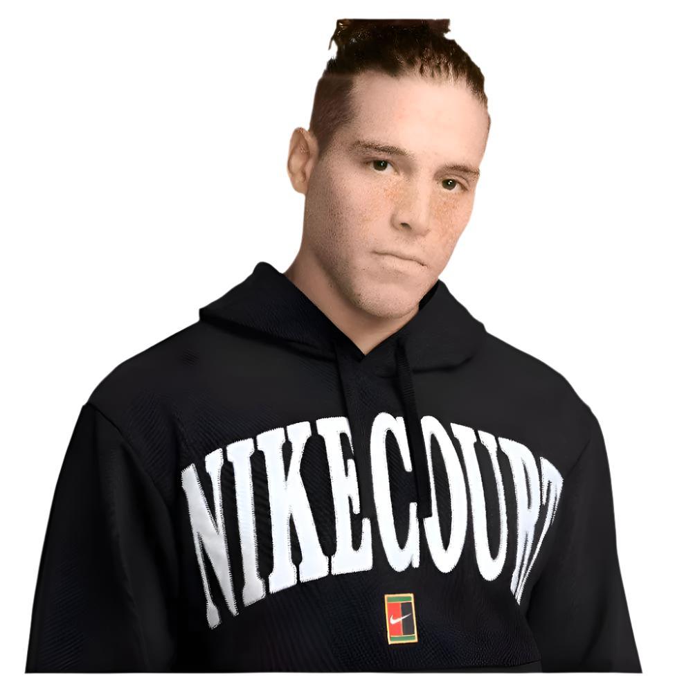 Bring out your best in the Nike Mens Heritage Dri-Fit Fleece Tennis Hoodie. A prominent NIKECOURT logo across the chest alongside the patch logo reinforces your passion for tennis. Densely knit, heavyweight French terry fabric is soft to the touch and designed to keep you warm. Dri-Fit technology ensures you don't feel stuffy by wicking sweat from the skin for fast-drying relief that keeps you dry. Topping everything off is a sleek finish for a shiny new look.