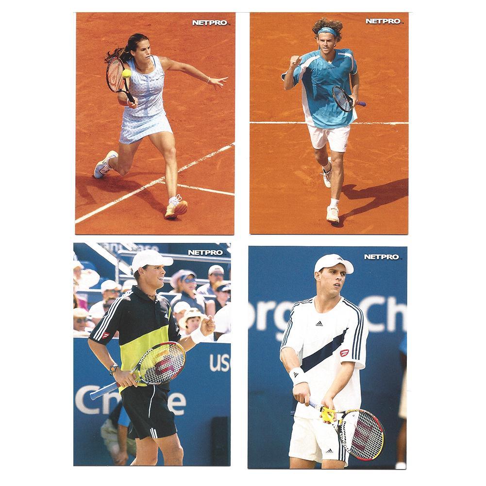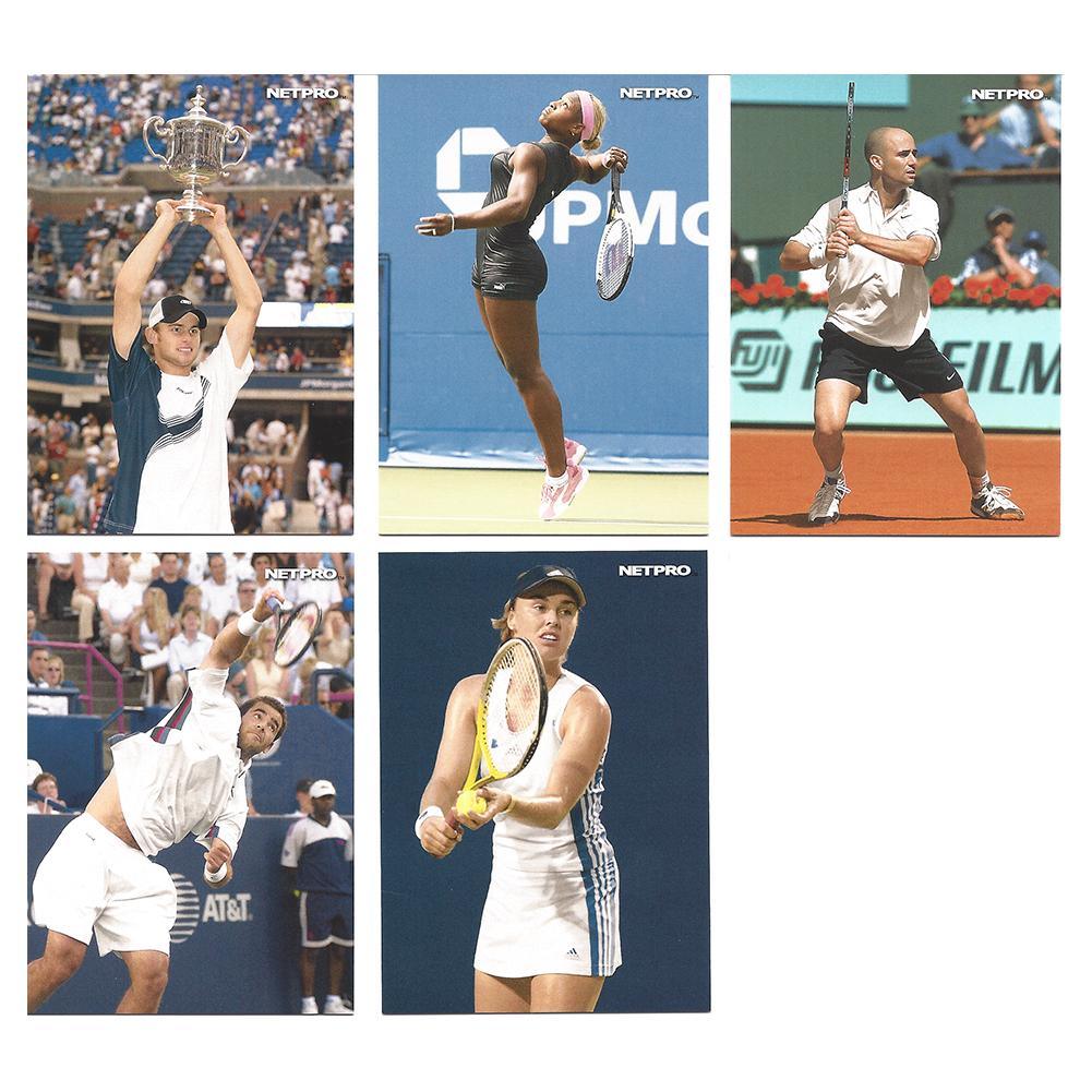 Expereince timeless images of some of the greatest players in tennis history when you purchase this pack of Netpro Photo Trading Cards. The new, unopened set has some of your favorite players such as Roger Federer, Rafael Nadal, Serena and Venus Williams, Andre Agassi, Pete Sampras, Martina Hingis, Lleyton Hewitt,Andy Roddick, Anna Kournikova, Chanda Rubin, Jan-Michael Gambill, Lindsay Davenport, Mike and Bob Bryan, James Blake, Amelie Mauresmo, Fernando Gonzalez and many more. Relive some of the most iconic moments in tennis as you gaze upon the glory days.