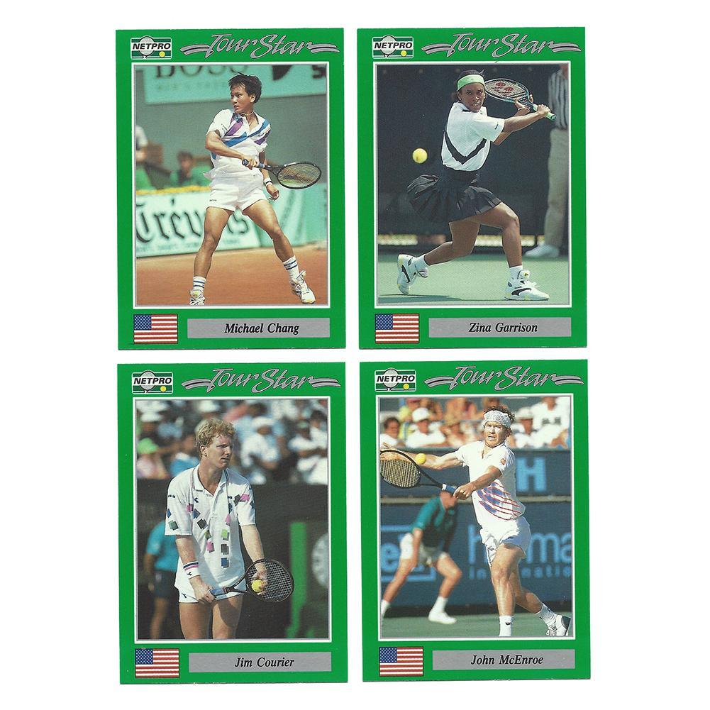 The Netpro Tour Stars Tennis Trading Card Set include famous tennis players such as Andre Agassi, Pete Sampras, Martina Navratilova, Michael Chang, Gigi Fernandez, John McEnroe, Zina Garrison, Brad Gilbert, Richey Reneberg, Malivai Washington, Yannick Noah, goran Ivanisevic, Katrina Adams, Anne Smith, Pam Shriver, Lori McNeil, MatsWilander, Darren Cahill, Thomas Muster and many more. The factory sealed card set is available for a limited time only, so buy your Netpro Tour Stars Tennis Trading Card Set while supplies last.