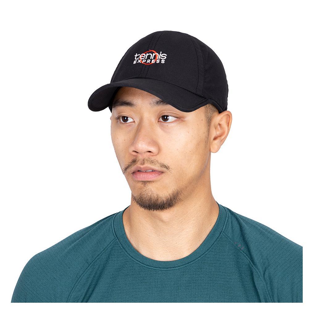 The Tennis Express Unisex Featherlight Tennis Cap Black provides excellent stretchability in a lightweight cap with a stylish, low profile fit! This cap is made with 100% polyester, so it wicks away moisture, keeping you dry and comfortable. Adjustable velcro strap in the rear. Also look for the official Tennis Express logo embroidered at front.