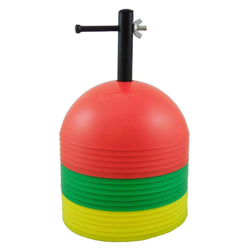 The Oncourt Offcourt Dome Cones Set of 18 are extremely versatile and can be used for target groups and footwork, agility, or balance exercises. Each durable set of 18 cones come in 3 bright colors and includes a convenient storage pole. Each cone is 8" wide and 3" high supporting up to 100 lbs.