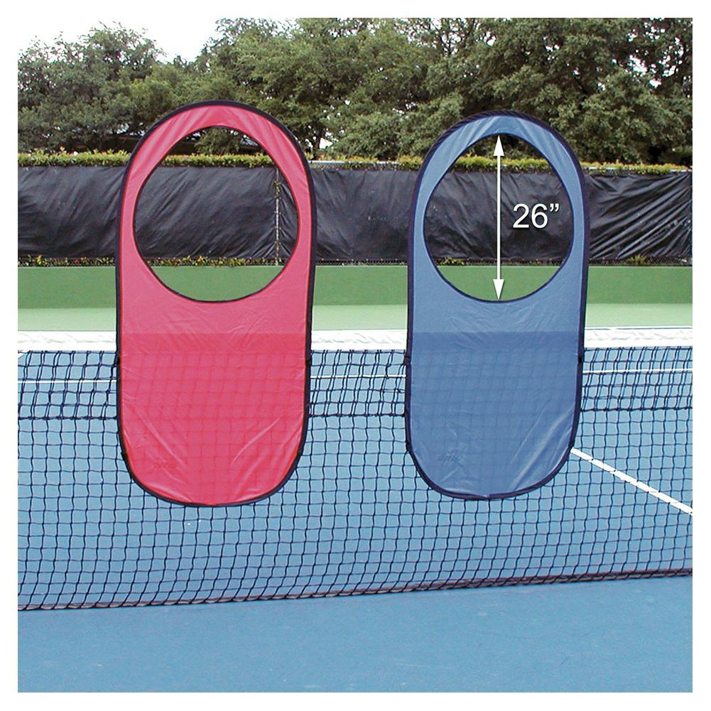 Originally, the colorful Oncourt Offcourt Pop-Up Targets were simply designed to attach to a tennis net to focus serving practice as well as many other shots, including passing shots, return of serves, and more. However, many parents and coaches are attaching them to fences and even hanging them from clothes lines to create targets for throwing baseballs and footballs, and even kicking soccer balls! These Pop-Up Targets are made of impact resistant nylon with a durable metal frame. The opening is over 20 inches in diameter and the velcro loops take just a few seconds to set up. Each Oncourt Offcourt Pop-up Targets folds into its own nylon case for convenient storage when not in use. Set of 2 includes one red and one blue target.