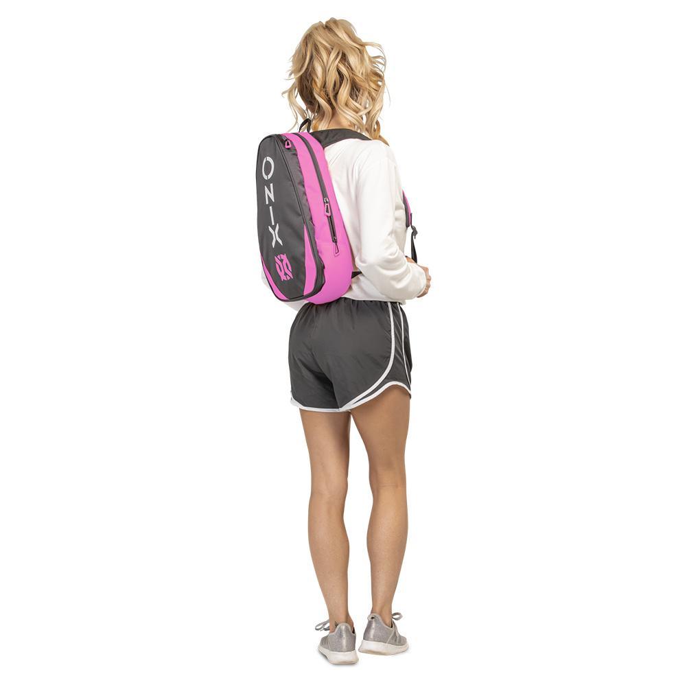 Help raise breast cancer awareness in style with the Onix Pro Pickleball Minipack Pink and Black. This compact backpack reduces bulk by only needing the bare essentials. A padded paddle compartment will keep your pickleball paddle secure and protected from the elements. Its main compartment is spacious and can store your essential items. With adjustable padded shoulder straps, carrying around your pickleball essentials has never been easier!