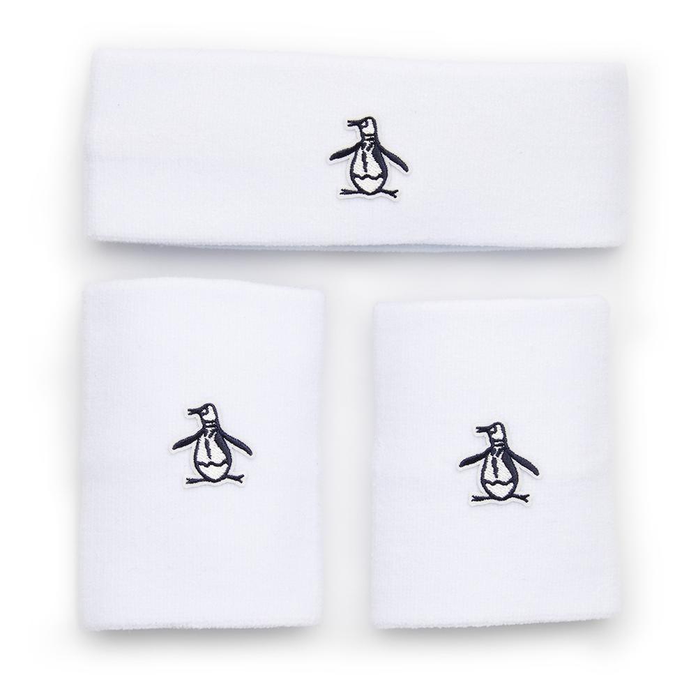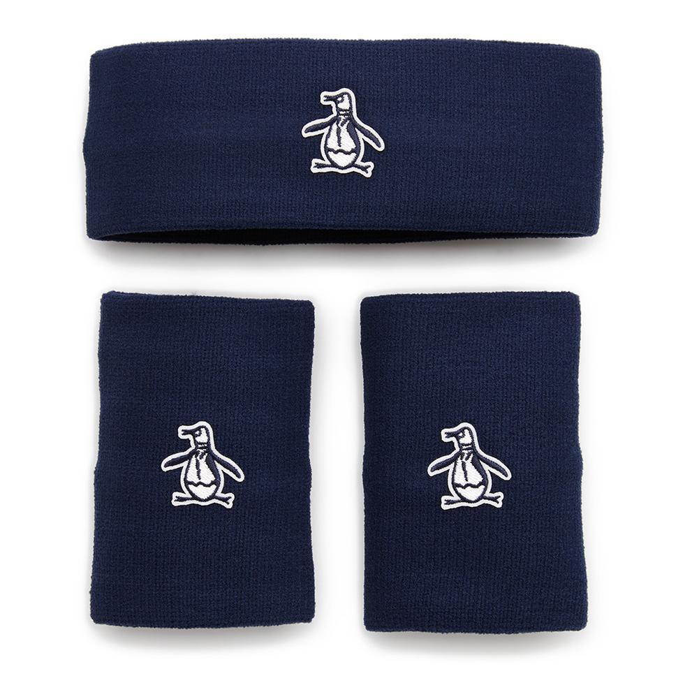 Never break a sweat with the Penguin Men's Solid Head and Wristband Set. This 3 piece set includes a pair of wide-lengthed wristbands and a headband to give athletes everything they need to wipe away sweat. Each accessory is made with a terry cotton blend that's both absorptive and comfortable to wear. A felt Penguin Pete lgo embroidered on each band adds the finishing touches to create an iconic design.