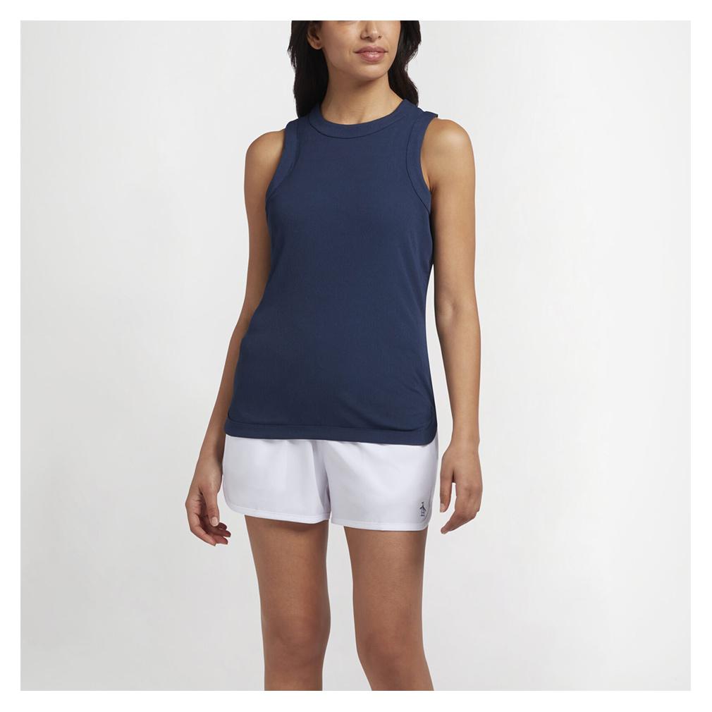 The PENGUIN Women's Essential Rib Tennis Tank is a must-have piece for any tennis player. Made with a ribbed fabric, this tank top offers a stretchy and comfortable fit while providing support during intense matches. The tank top features a classic design, with a flattering scoop neckline and a racerback style that allows for a full range of motion. The fabric is moisture-wicking, keeping you cool and dry, and the stretchy fabric ensures that the tank top moves with you, making it perfect for tennis players.