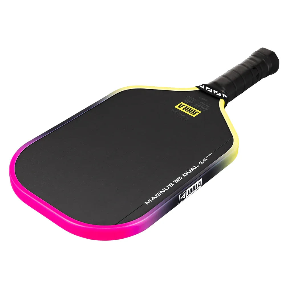 The Joola Magnus Pro 3S Dual 16mm Pickleball Paddle combines an elongated head shape with a shorter handle to provide both power and maneuverability. It features Joola's Propulse Core for explosive hitting power, which combined with the Hyperfoam Edge Wall for improved stability and sweet spot size gives you the finesse needed to sink in a finishing hit. Use the NFC chip in the handle to authenticate your paddle using the Joola Connect app for exclusive features.