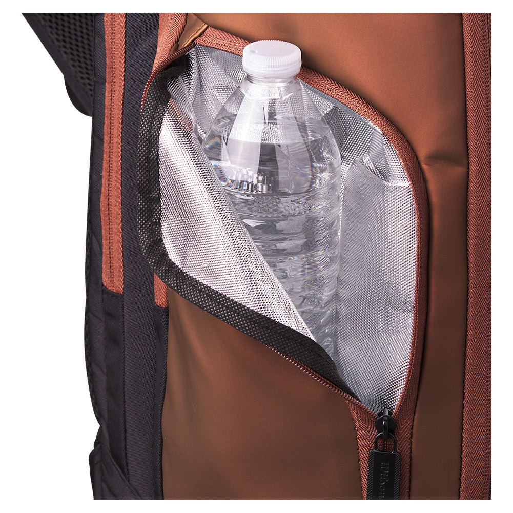 Sometimes you need a bag that is a little lighter, and easier to handle in transit. The Wilson Pro Staff v14.0 Super Tour Tennis Backpack is perfect for such situations. The bag can hold two racquets, a laptop, extra clothing, and smaller items that fit perfectly in the side zip pocket. A ventilated compartment works for a pair of shoes or dirty clothes, and a Thermo-guard pocket protects snacks or a small water bottle from extreme temperatures.