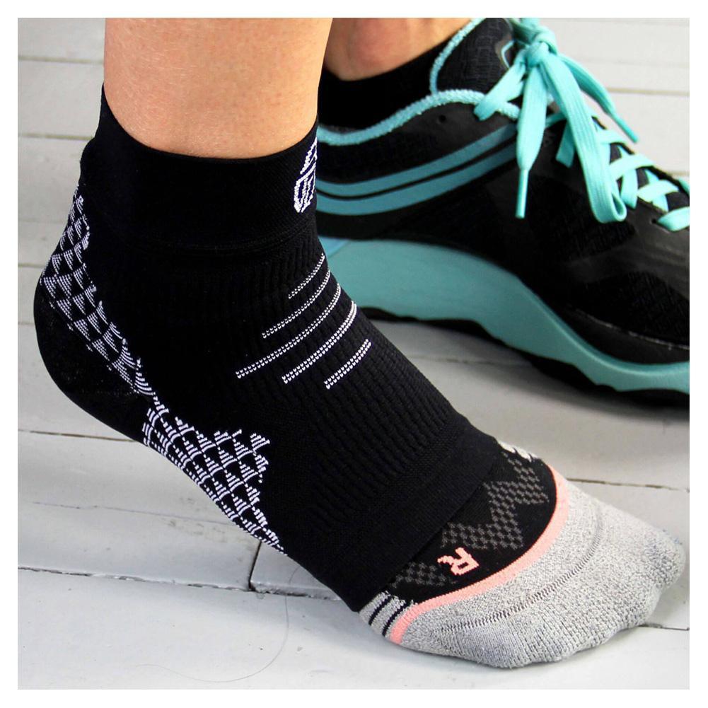 Jump into action with our Pro-Tec PF Foot Sleeve (Single). This foot sleeve has an open toe design with advanced stitching that provides targeted stabilization in the arch, heel, and Achilles. Plus it has specialized compression in the arch and heel. While it is sold in singles this sleeve fits both the right or left foot. It also fits comfortably over socks and into shoes and is designed to be worn in motion to alleviate pain.