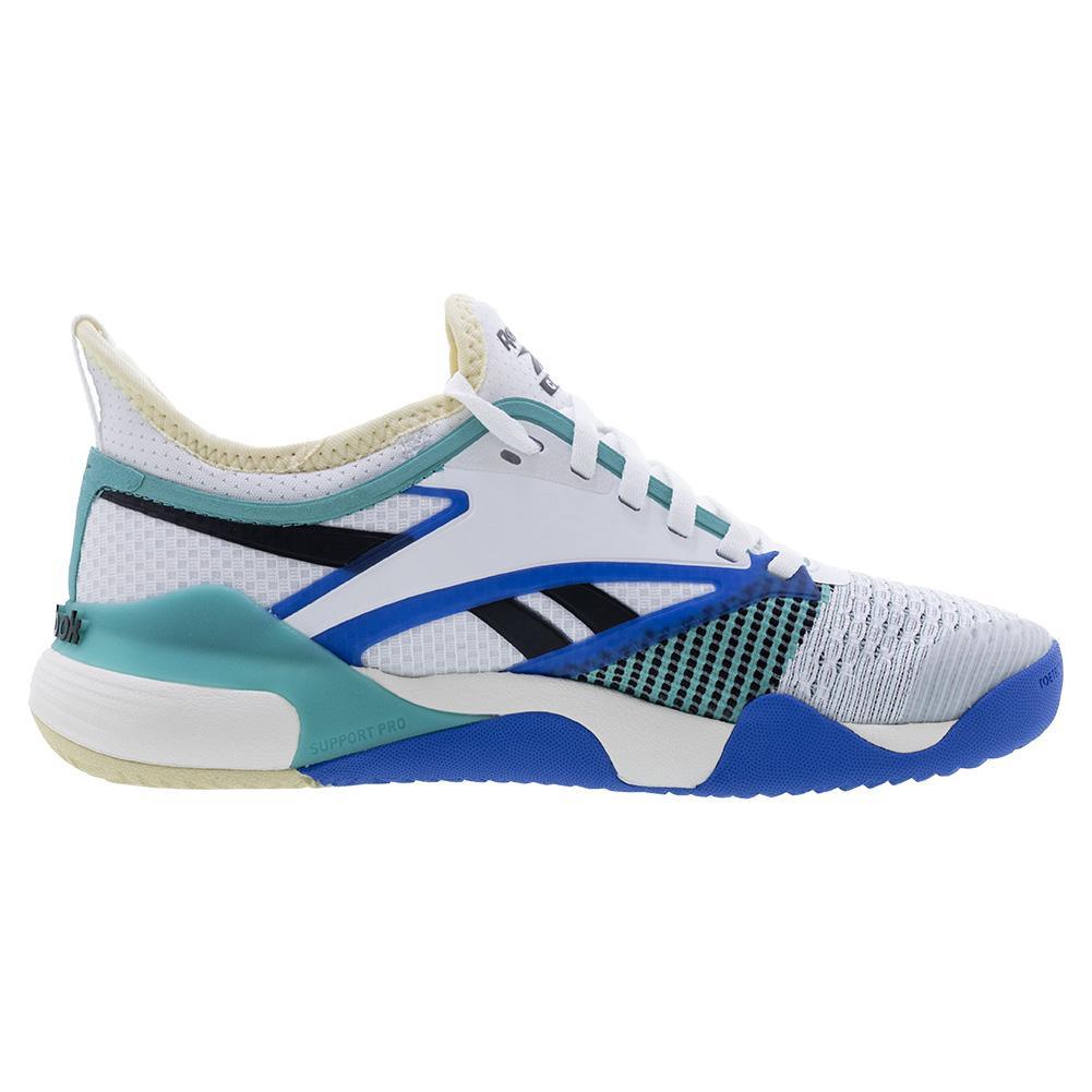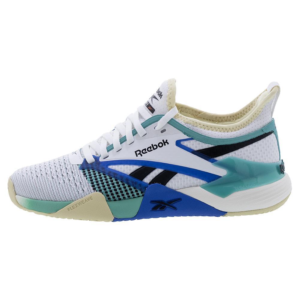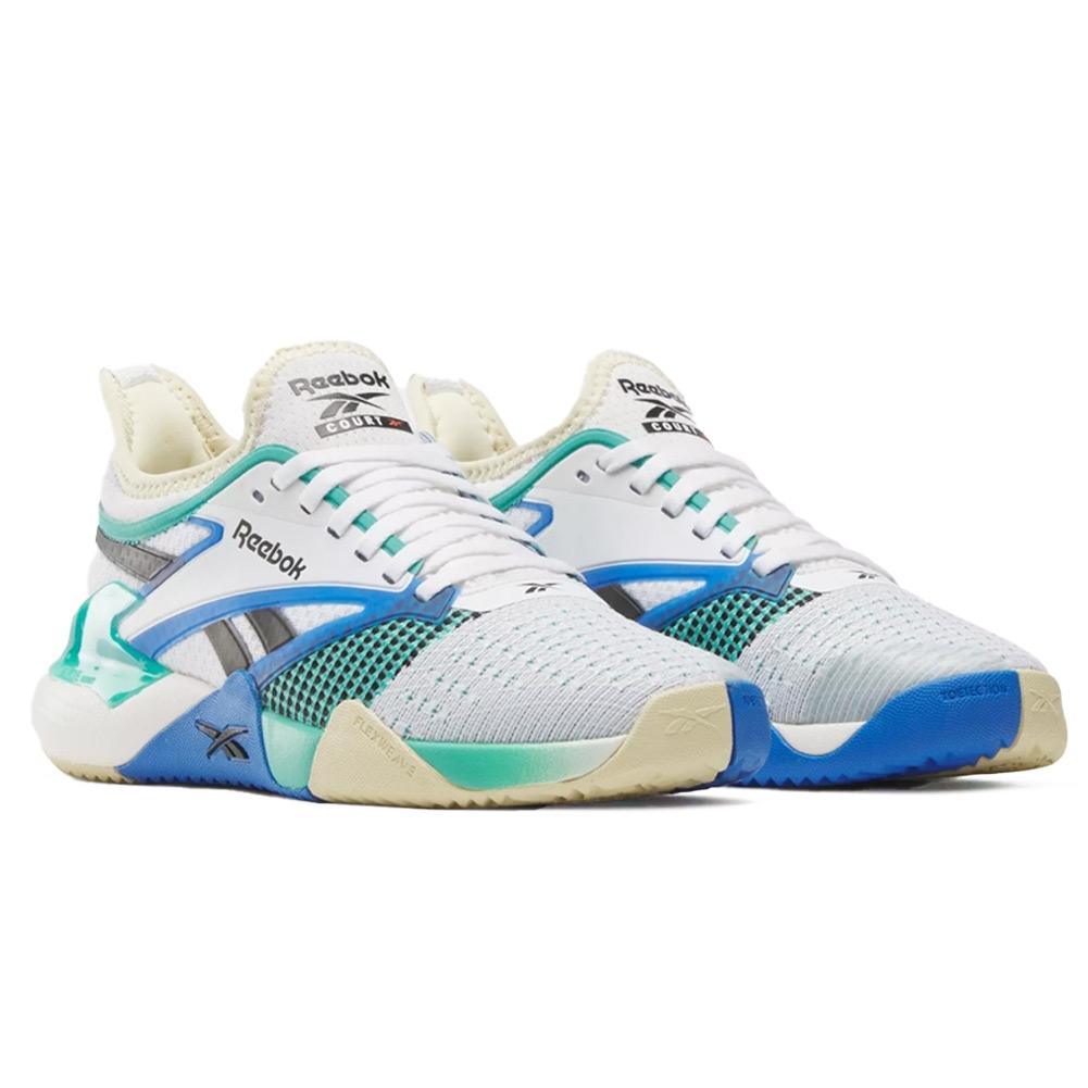 Step out of the gym and onto the court in the Reebok Women's Nano Court Shoes. Created for any game you play on the court, whether tennis, pickleball, padel, racquetball or badminton. They have a Flexweave® upper with extra support where you need it most. A herringbone Megagrip rubber outsole provides multidirectional traction to keep you firmly planted on the court.