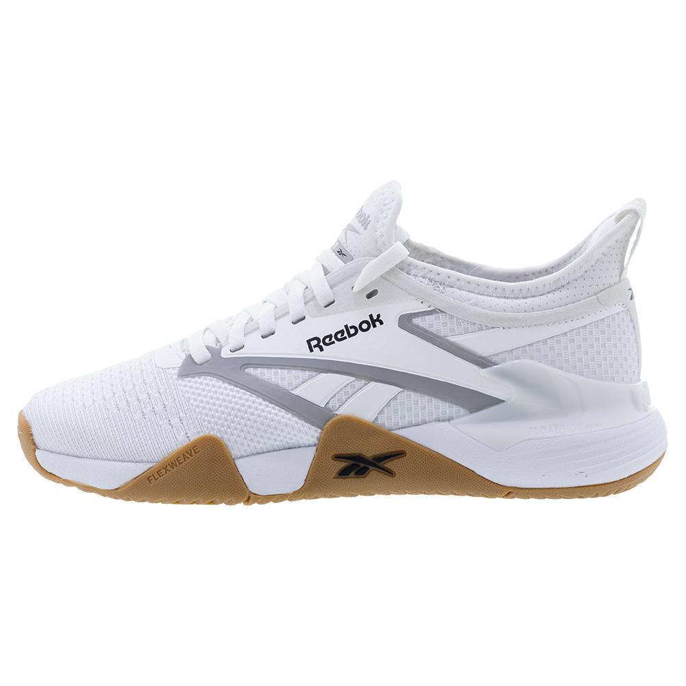 Step out of the gym and onto the court in the Reebok Women's Nano Court Shoes. Created for any game you play on the court, whether tennis, pickleball, padel, racquetball or badminton. They have a Flexweave® upper with extra support where you need it most. A herringbone Megagrip rubber outsole provides multidirectional traction to keep you firmly planted on the court.