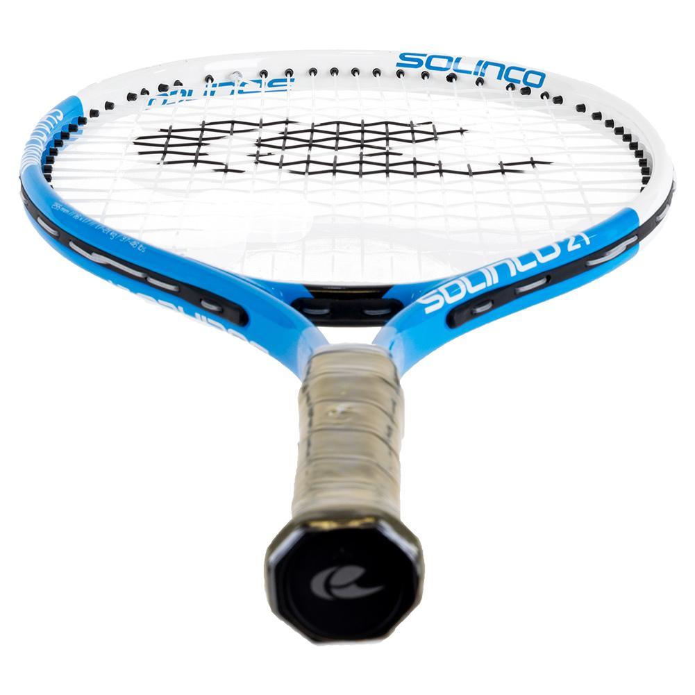 The Solinco Shadow 21 Inch Aluminum Junior Racquet is prestrung for convenience and only about 7 ounces strung. The racquet is constructed of lightweight aluminum and perfect for future stars learning the game with red balls on a small court.