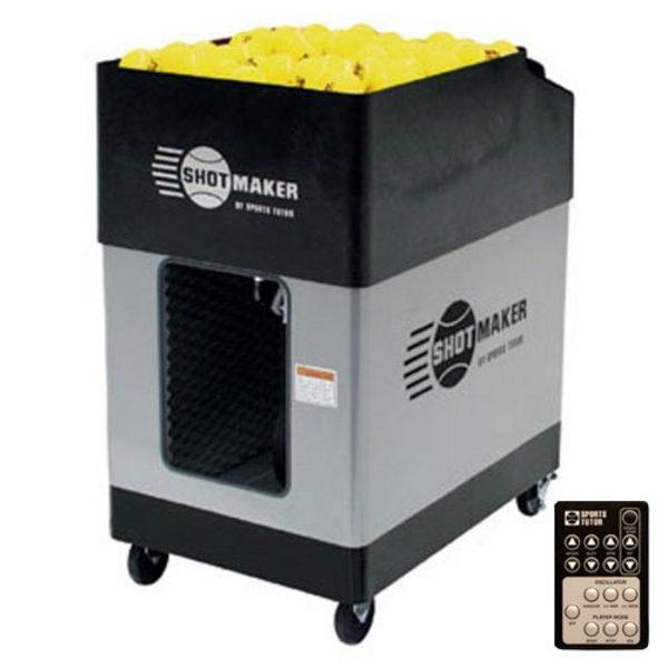 The Sports Tutor Shotmaker Deluxe is the top-of-the-line professional ball machine that will challenge players at any level. In fact, Shotmaker is used by tennis pros at the Association of Tennis Professionals (ATP) Training Center in Ponte Vedra Beach, FL. The Shotmaker Deluxe's case is made of high-impact injection-molded plastic and powder-coated aluminum for strength and rust resistance. The electric motors are all commercial grade and maintenance free. The Sports Tutor Shotmaker Deluxe model features Quick Set-up, Player Mode, and easy programmability.