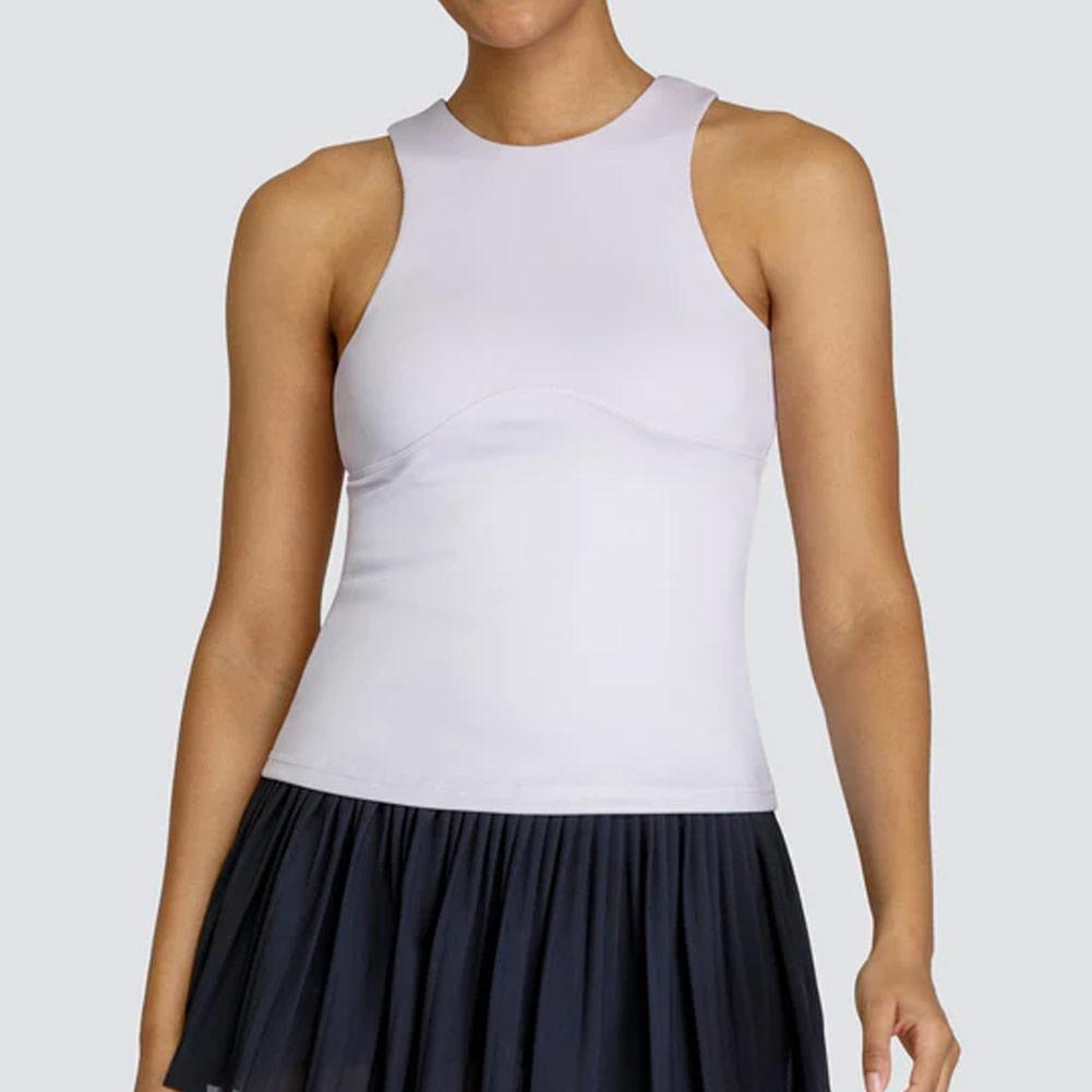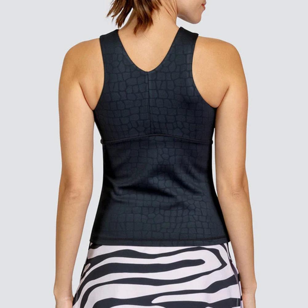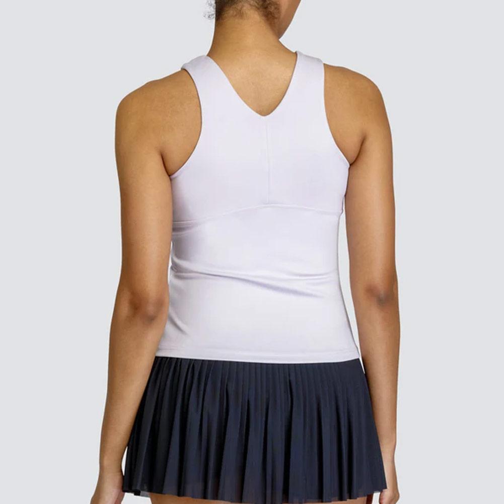 See your best shots come to life in this Tail Women's Bodhi Tennis Tank! This tennis tank was creatively designed with a boat neck and a lofty v-back. It has a unique colorway and stubble pattern. A thin set of piping runs under the bust and across the back. It also has a straight hemline and is made with a cool touch, double stitched knit material to help you look and play your best whether you are practicing or in a match. This tank offers UPF 50+ for added sun protection and goes well with other apparel by Tail. Check it out today!