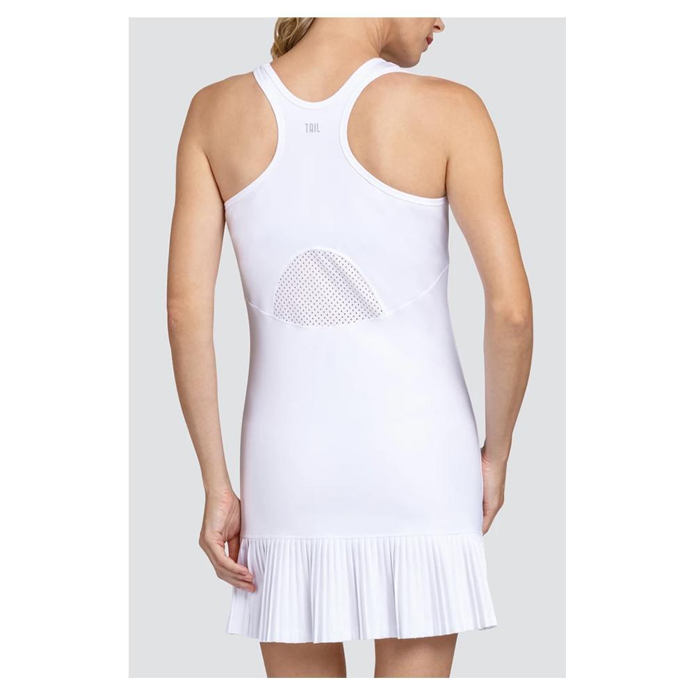 Look and play your best in the Tail Women's Coletta Tennis Dress. This solid-colored classic makes creative use of an asymmetrical pleated hem and a mesh inset at the back for a modern and chic look. The mesh also offers strategic ventilation to keep you dry and cool. Compression jersey enhances performance while moisture-wicking properties, UPF 50+ protection and comfort stretch all ensure that you stay focused and comfortable.