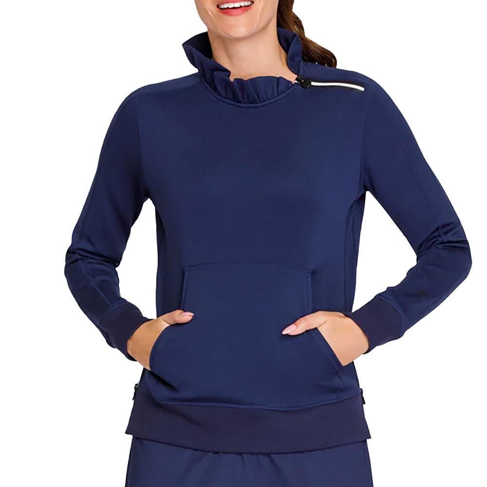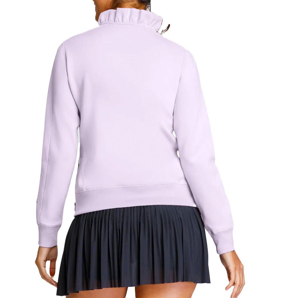 Elevate your tennis wardrobe with the Tail Women's Condoleezza Long-Sleeve Tennis Sweatshirt, a perfect blend of style and functionality. The flounce collar adds a touch of femininity, making it a standout piece on the court. Crafted with UPF 50+, this sweatshirt provides excellent sun protection, ensuring you stay comfortable during intense matches under the sun. The thoughtful addition of side hem zippers not only adds a trendy detail but also allows for easy customization of the fit and style. Also, featuring a convenient front pocket, this sweatshirt is as practical as it is stylish.