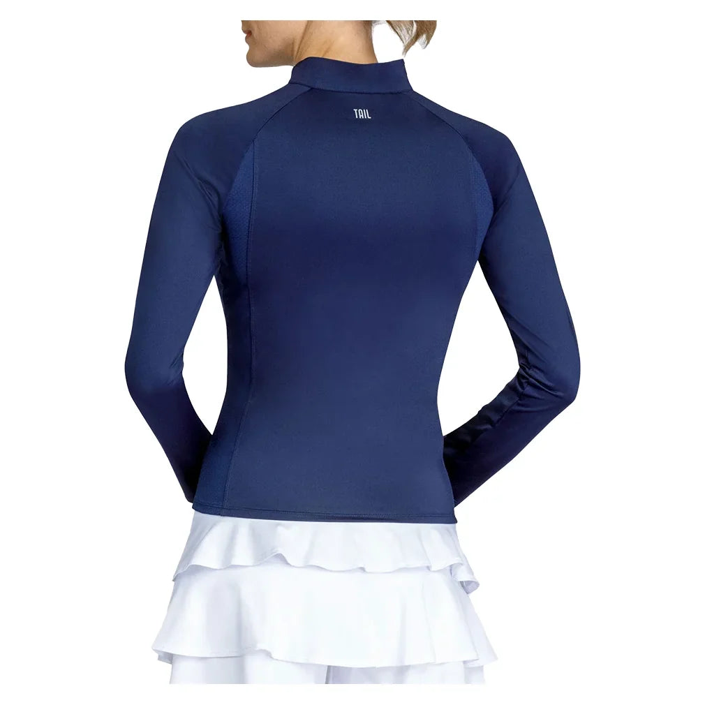 When you're ready to step up your game on the court, look no further than the TAIL Women's Imelda Long Sleeve 3/4 Zip Tennis Top. This top is made of Glamor Jersey, which is a soft fabric that's comfortable. The fabric also has UPF 50+ protection, which means it will block out harmful UV rays so you don't damage your skin while playing tennis. The top has a 3/4-length zipper along the front that can be opened for extra ventilation if needed. It also has a funnel neck opening at the top for extra comfort and ease of movement. The princess seams create curves in all the right places so you'll look fabulous even when sweating it out.