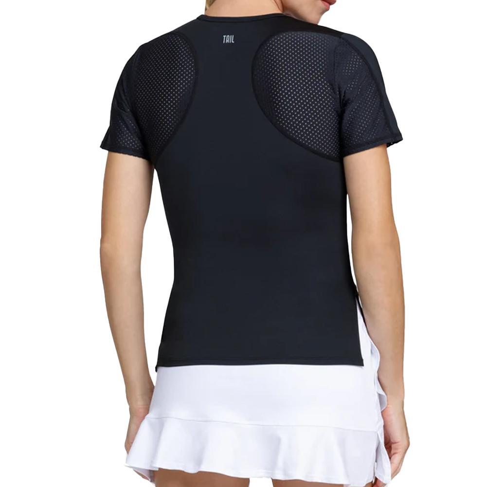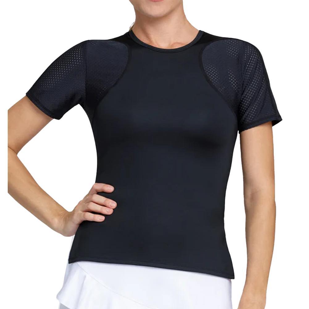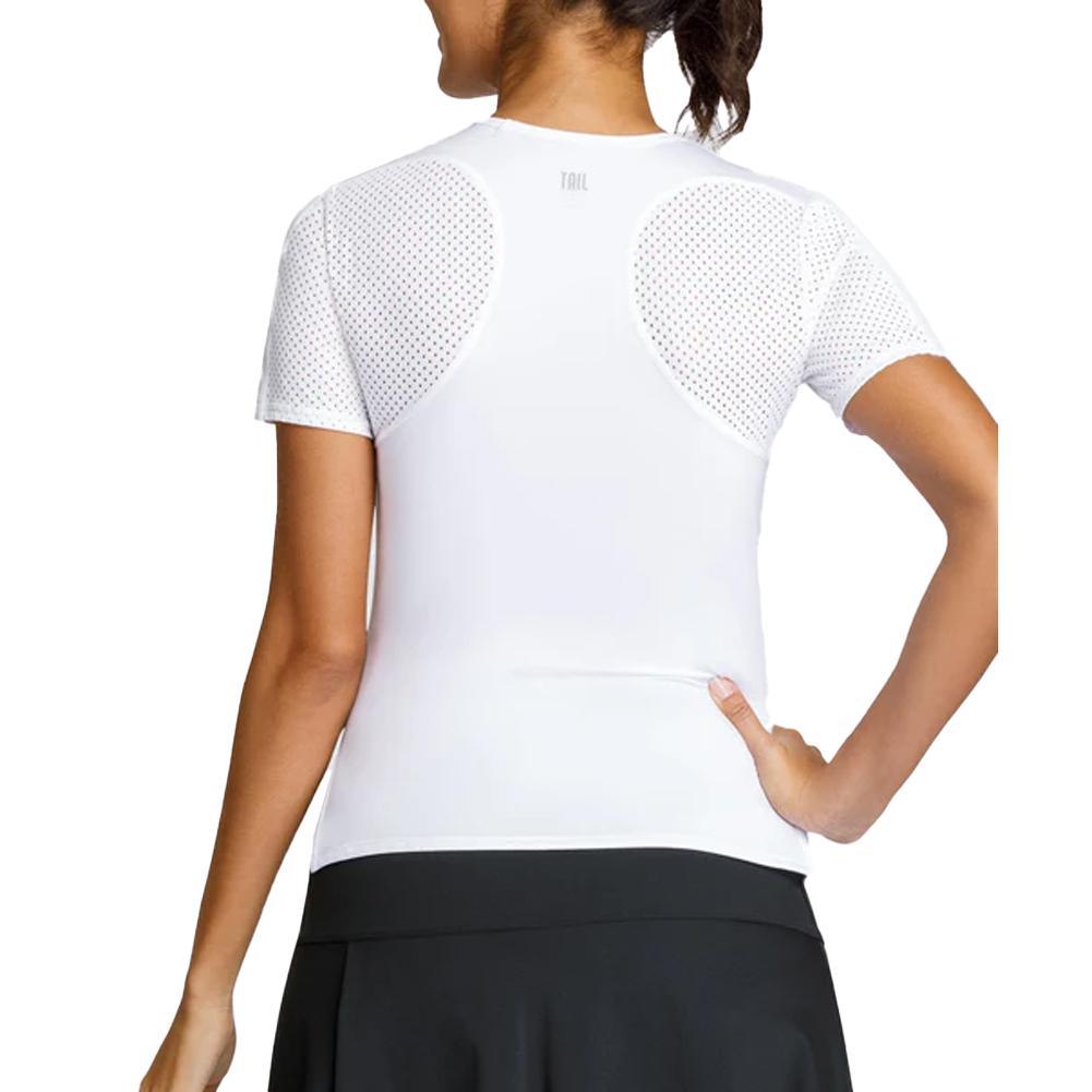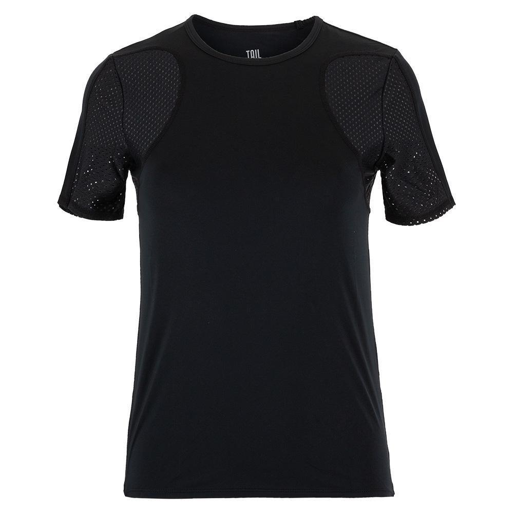 Update your workout wardrobe with the Tail Women's Katy Short Sleeve Tennis Top. Far from your average short sleeve tee, this flattering top is for days when your workout calls for a bit of extra coverage, but without sacrificing on style. A high, crew neck and full back will keep you covered, while side slits and dot mesh inserts on the sleeves will keep you cool as your workout heats up. The glamor jersey features moisture-wicking technology, UPF 50+ protection and comfort stretch which will allow you to stay comfortable and supported from one point to the next. Complete your match-day tennis outfit with the Tail Women's Jaquelin High Rise Tennis Legging in Blossom.