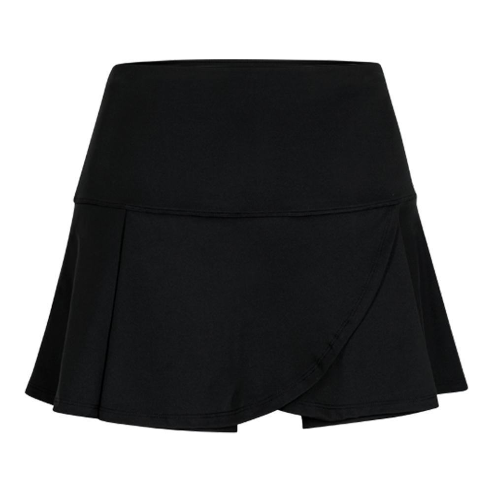Keep your opponents on defense in the Tail Women’s Lilo 13.5 Inch Tennis Skort in Black. The flat, elastic waistband helps you feel secure on the court while the pleated skirt moves with you on the court. Included shorties with ball pockets make this an easy-to-wear piece, ready for your athletic wardrobe. Compression Jersey provides moisture-wicking, UPF 50, breathability, and softness you’ll love. Mix and match with any piece in your tennis wardrobe. Exclusive Tail logo at the center back of the waistband.