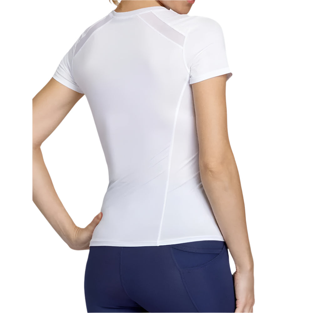 The TAIL Women's Lorenia Short Sleeve Tennis Top is the perfect addition to your summer wardrobe. This gorgeous, lightweight top will keep you cool and protected from the sun's harmful UV rays with its UPF 50+ rating. The Glamor Jersey fabric is soft and breathable, making it a comfortable choice for any activity. The short sleeve design is stylish and flattering, while the crew neckline provides coverage without sacrificing style. The shoulder inserts add just the right detail.