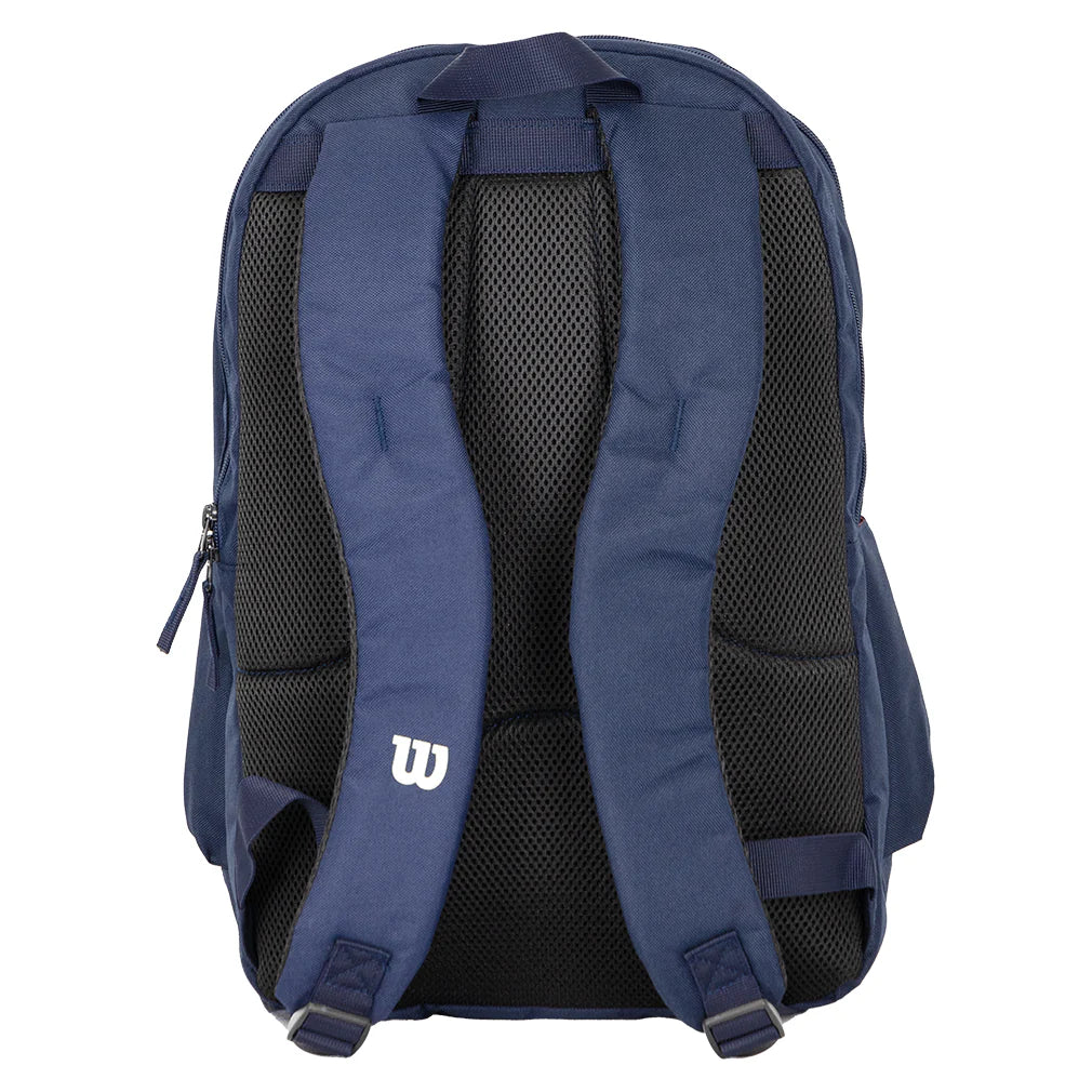 The Wilson Team Tennis Backpack is a versatile bag for club players on the go. Its racquet can hold 2 tennis racquets and partially encloses them, ensuring the heads stay covered as the handles stick out. With the shoe compartment, it's easy to keep a change of tennis shoes on hand so you're ready to get into action on a moment's notice.