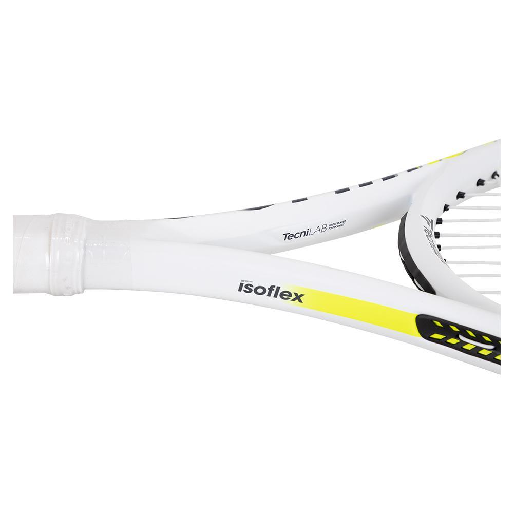 Tecnifibre seeks to give power a new feel with the TF-X1 285 Tennis Racquet. The more rounded head shape creates a larger sweet spot with which makes it easier to deliver punishing ground strokes. The X1 285 features a special ISOFLEX cross section design which makes the entire racquet face play consistently. Lower in the racquet hoop, the frame is slightly thicker to create more string flex at contact. The goal is a sweet spot that extends the entire face of the racquet. While comfort can be an issue with a thicker frame construction, Tecnifibre incorporated their X-Damp technology into the racquet handle to help maintain plenty of comfort. X-Damp combines silicone elastomer and stainless steel to filter out harmful low frequency vibrations. The TF-X1 285 features a spacious 100 square inch head, and an open 16x19 string pattern to go along with a very mobile 10 ounce unstrung weight. Expect plenty of pop, spin, and comfort from the TF-X1 285. Players seeking a little more punch and stability will find the X1 285 a good racquet choice, and with the X-Damp technology it is surprisingly comfortable.