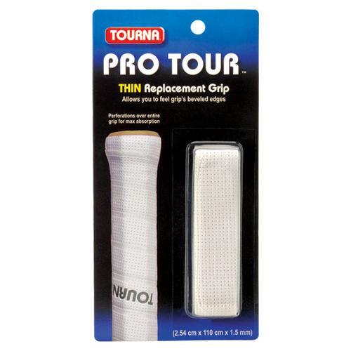 Tourna Pro Tour Replacement Grip blends soft cushioning with impressive absorbency. At 1.5 millimeters thick, this replacement grip hardly increases the size of the grip. Small perforations help you keep a firm grip.
