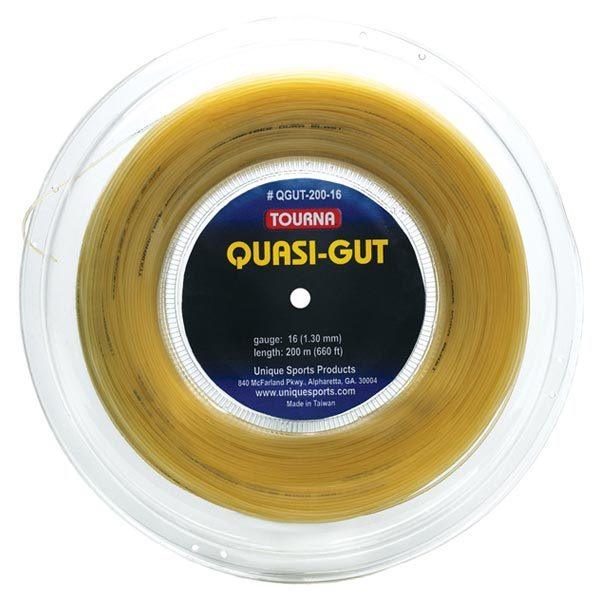 Now offered in convenient 660 foot reels, Tourna continues with their line of affordable, high performance products with the new Tourna Quasi-Gut 16 bringing natural gut like power to a more durable, economic string. Constructed using thousands of tightly wound microfibers, this string offers a soft, comfortable string bed with power to spare. Quasi-Gut utilizes a new thermo-elastic polyurethane resin to bind the multifilament core of the string for enhanced tension maintenance for longer playability. The tightly wound microfibers are coated to extend time before fraying begins, and then wrapped again with larger filaments in an outerwrap. This construction helps to increase the durability of the string by not allowing the wear to immediately occur to the smaller multifilament core. With this much performance made available at an economical price, this string is definitely worth a try for anyone looking for natural gut like performance with added durability. Quasi-Gut is a great fit for players with arm problems as well as making a solid choice for a soft string for hybrid application.