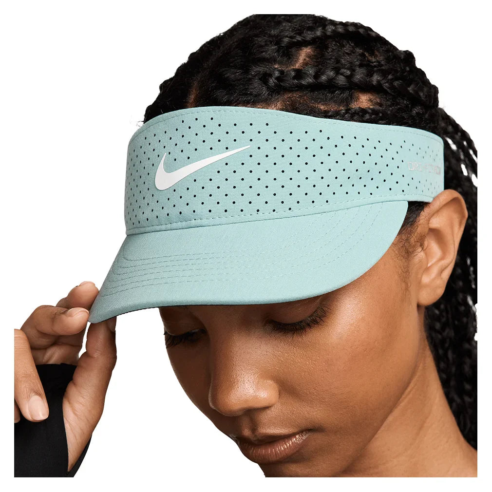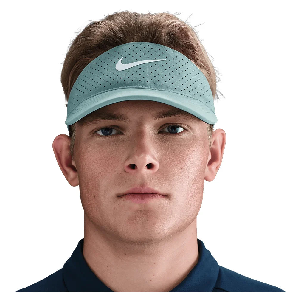 Keep your eyes on the prize with the help of the Nike Men's Dri-Fit Advance Ace Tennis Visor. It's designed with a shortened Aerobill to reduce distractions while still protecting your eyes from sunlight. UV protection further keeps your skin safe from getting sun-damaged. The perforated liner provides extra breathability, which in combination with Dri-FIT ADV moisture-wicking technology helps players keep a cool head even in the heat of the match.