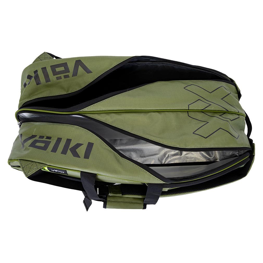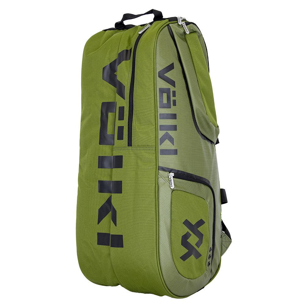 Pack all your tennis gear in the Volkl Primo 6-Pack Combi Tennis Bag. Store 6 tennis racquets between its 2 racquet compartments, one of which is made with silver thermal climate control lining to protect your most valuable racquets from extreme temperatures. The interior features a zipped pocket to help organize your valuables, plus 2 outer front sleeve pockets give extra space for other accessories.