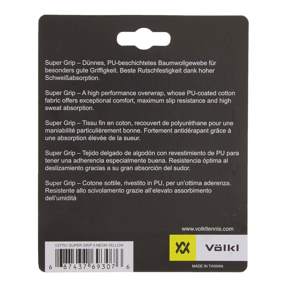 The Volkl Super Grip II 3 Pack Neon Yellow Overgrip is made with a high amount of tact for great feel, with an ultra thin polyurethane coating to add to the high performance. This grip is sure to help you feel every shot.